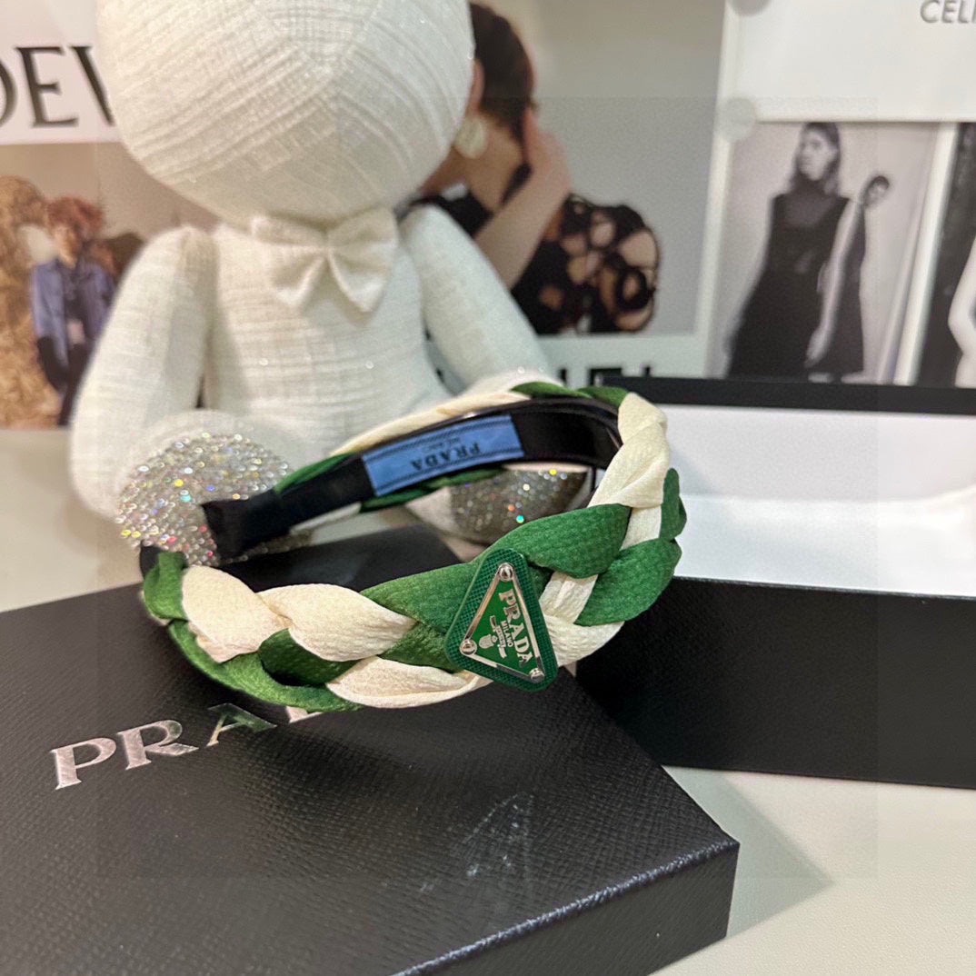 BRAIDED HEADBAND IN GREEN AND WHITE FABRIC 316685