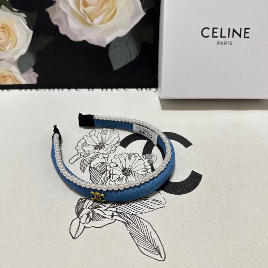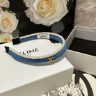 BRIGHT BLUE DENIM FABRIC HAIRBAND WITH PEARL CHAIN 400482