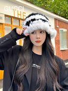 BUCKET HAT IN BLACK MIX WHITE RABBIT FUR 404640