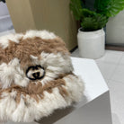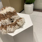 BUCKET HAT IN MEDIUM BROWN MIX WHITE RABBIT FUR 404638