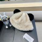 BUCKET HAT WITH CUTE BEAR EARS IN BEIGE RABBIT FUR 434968