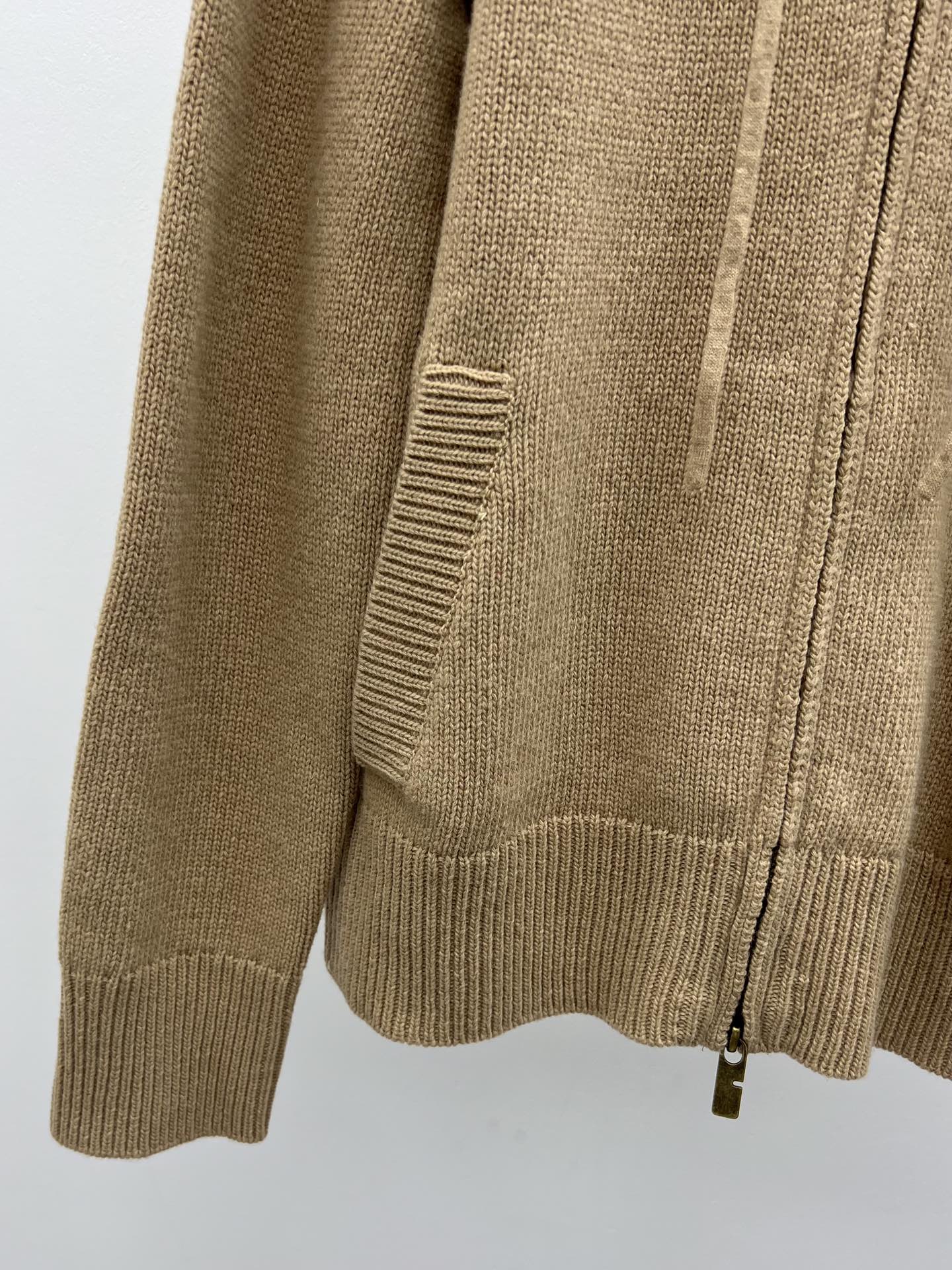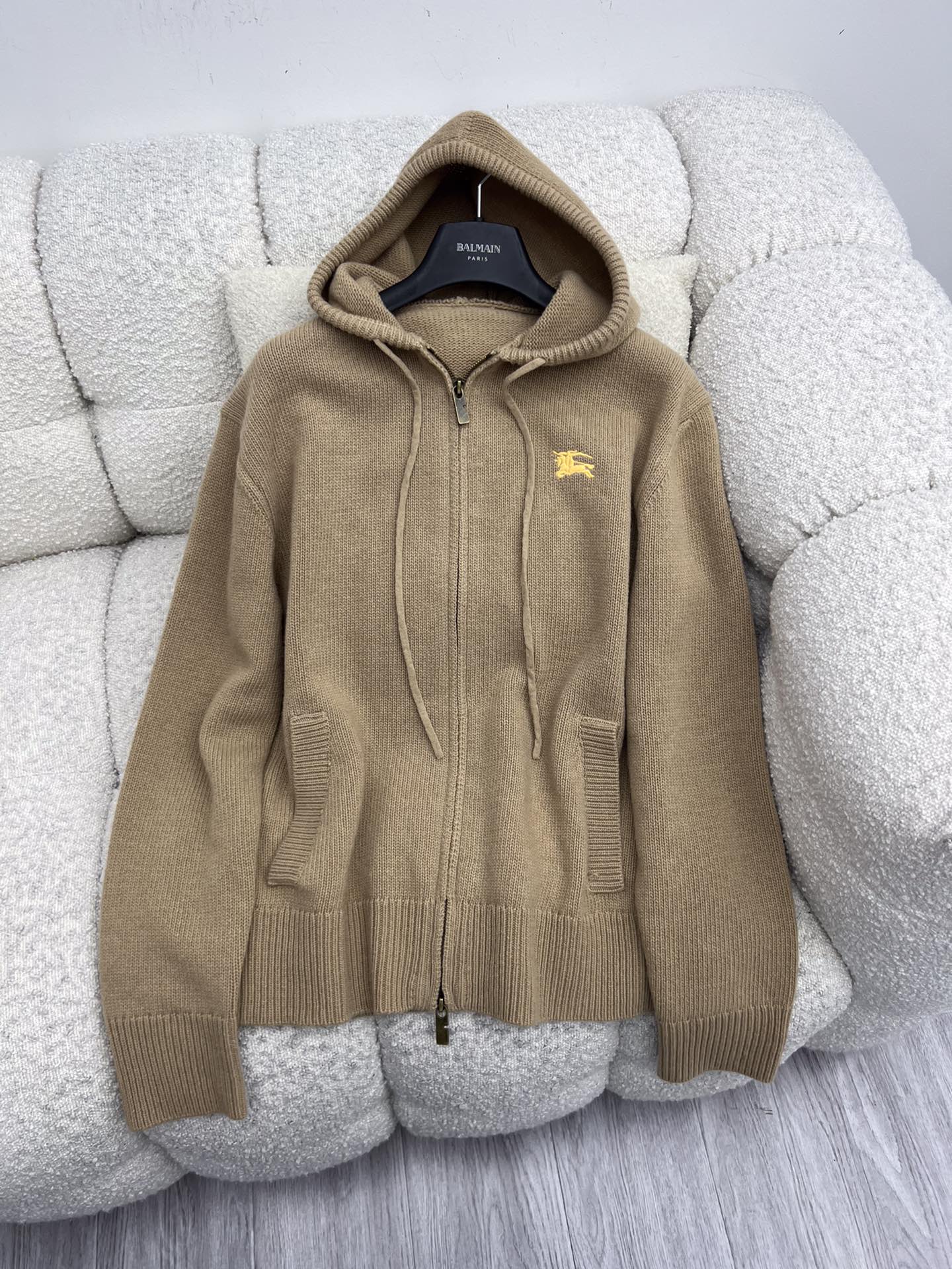 Burberry 25 Zipper-Up Hooded Knit Cardigan Beige Wool Cashmere