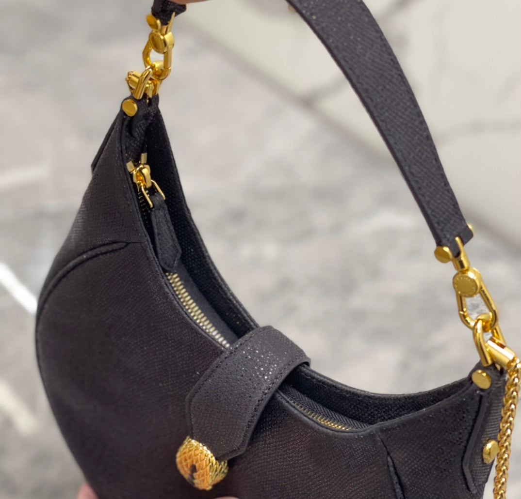 BVL Serpenti Ellipse Crossbody Bag 25cm Black Lambskin GHW 188344