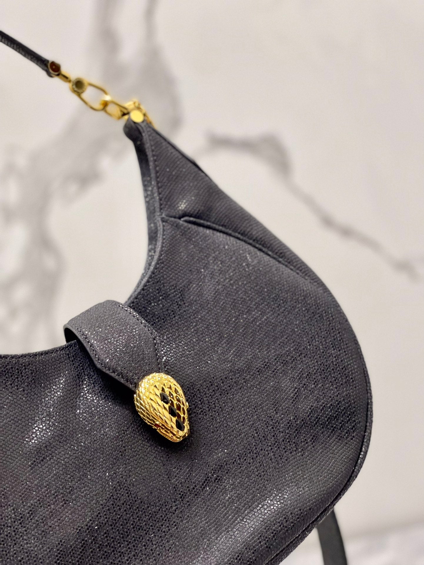 - Serpenti Head: Light Gold-Plated Brass, Gold Enamel