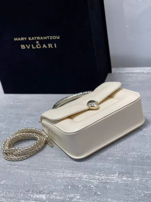 BVL Serpenti Mary Katrantzou Top Handle 19cm White Lambskin GHW 188674