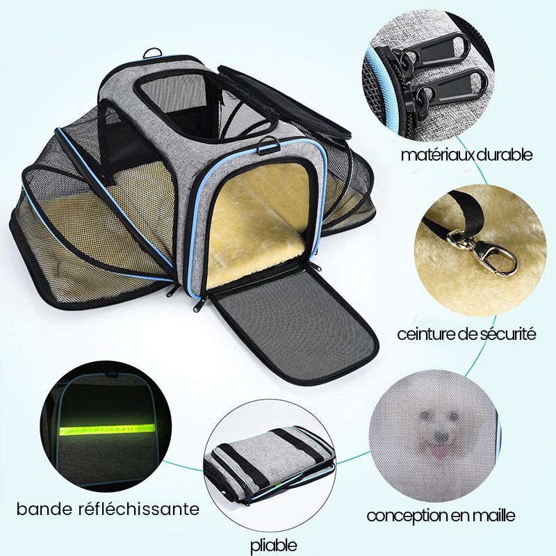 - Extensible : Le sac de transport peut être agrandi pour offrir plus d'espace à votre chat.