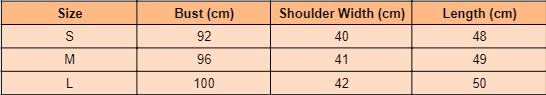 - Size : S, M, L