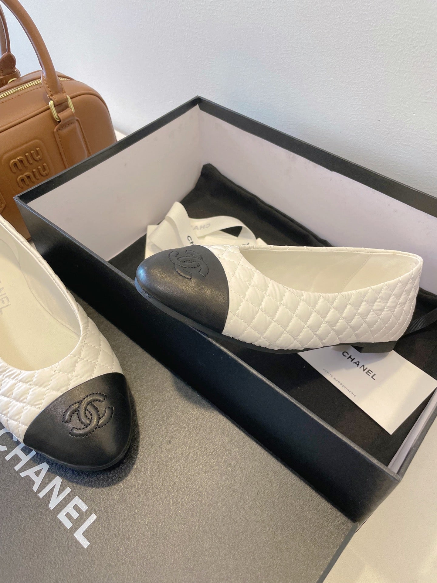 CC 25A Ballet Flat Quited White Black Sheepskin 530542