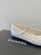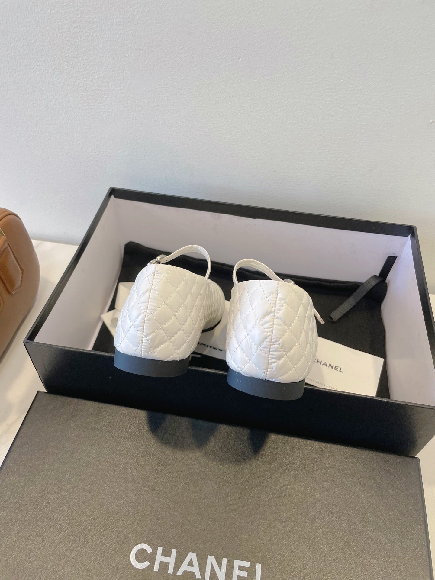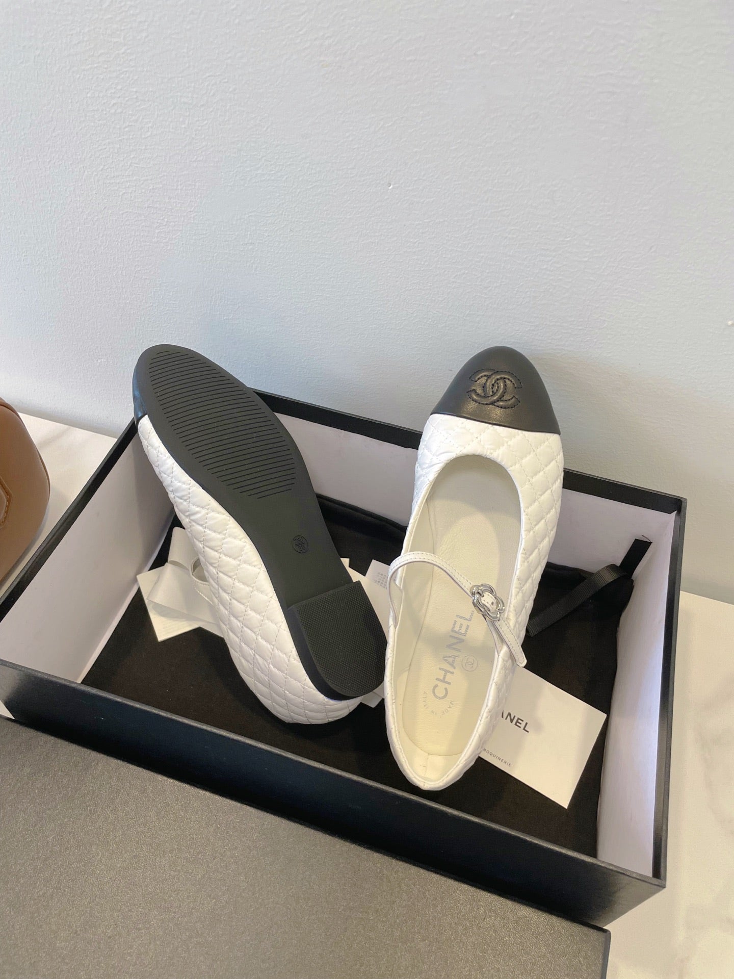 CC 25A Ballet Flat With Strap Quited White Black Sheepskin 530540