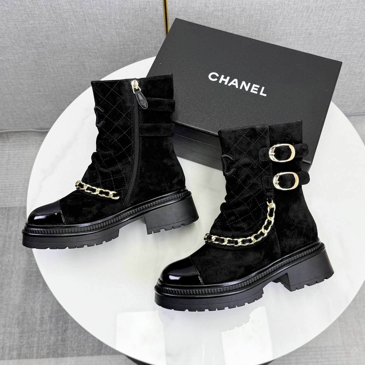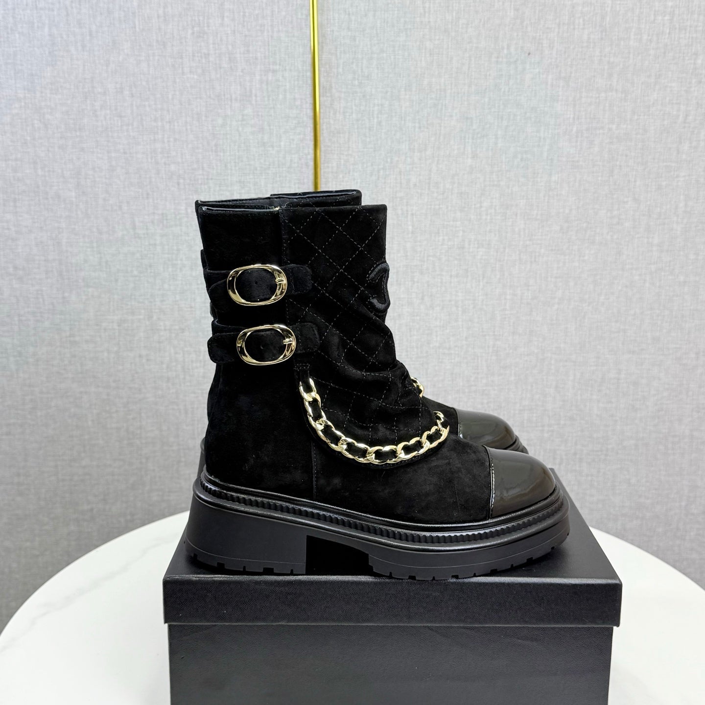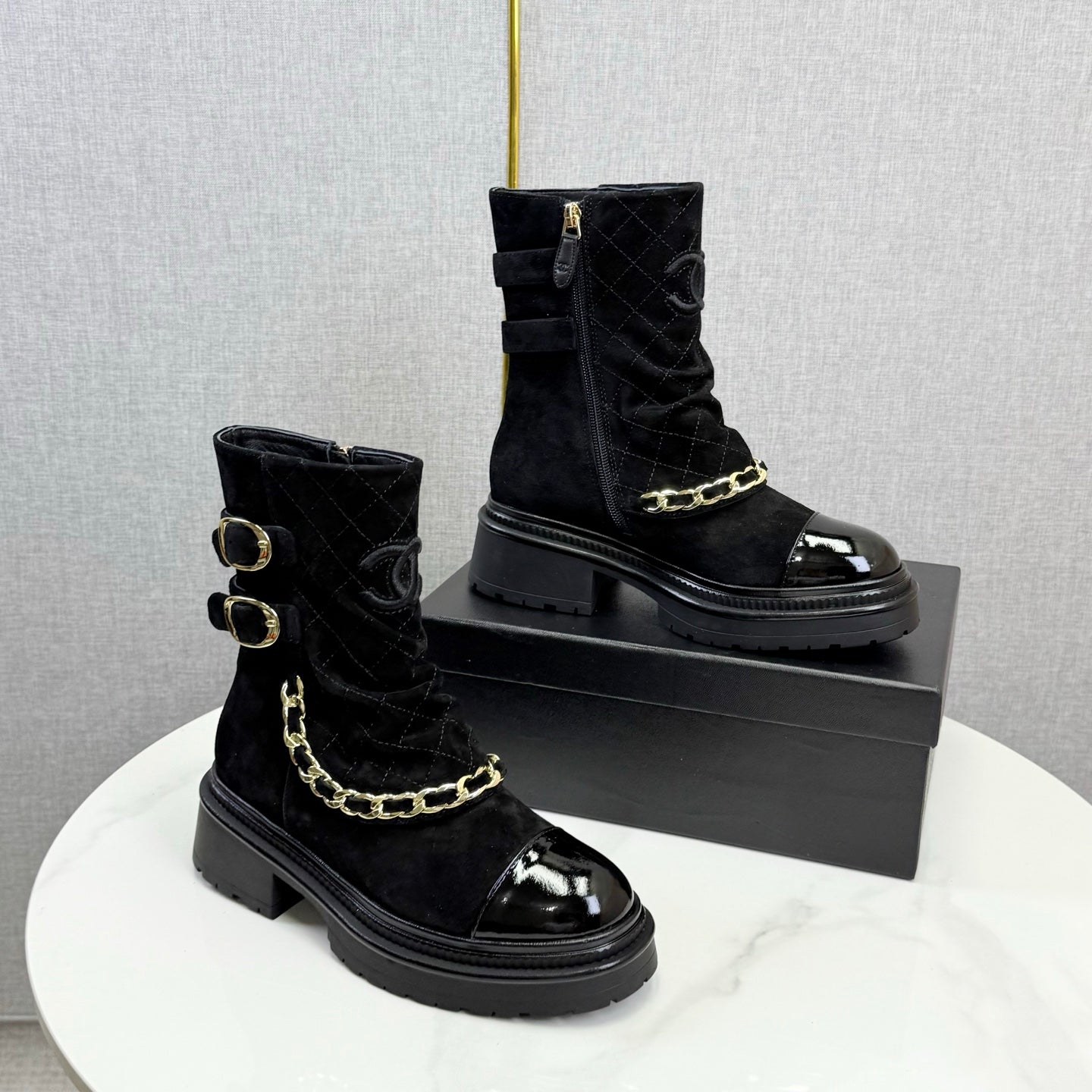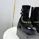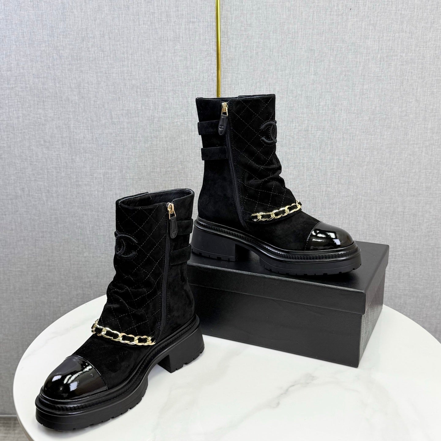 CC 25B AW Ankle Boots Black Quited Suede Patent Leather 541070 GHW