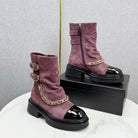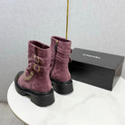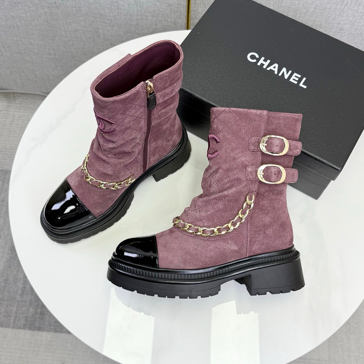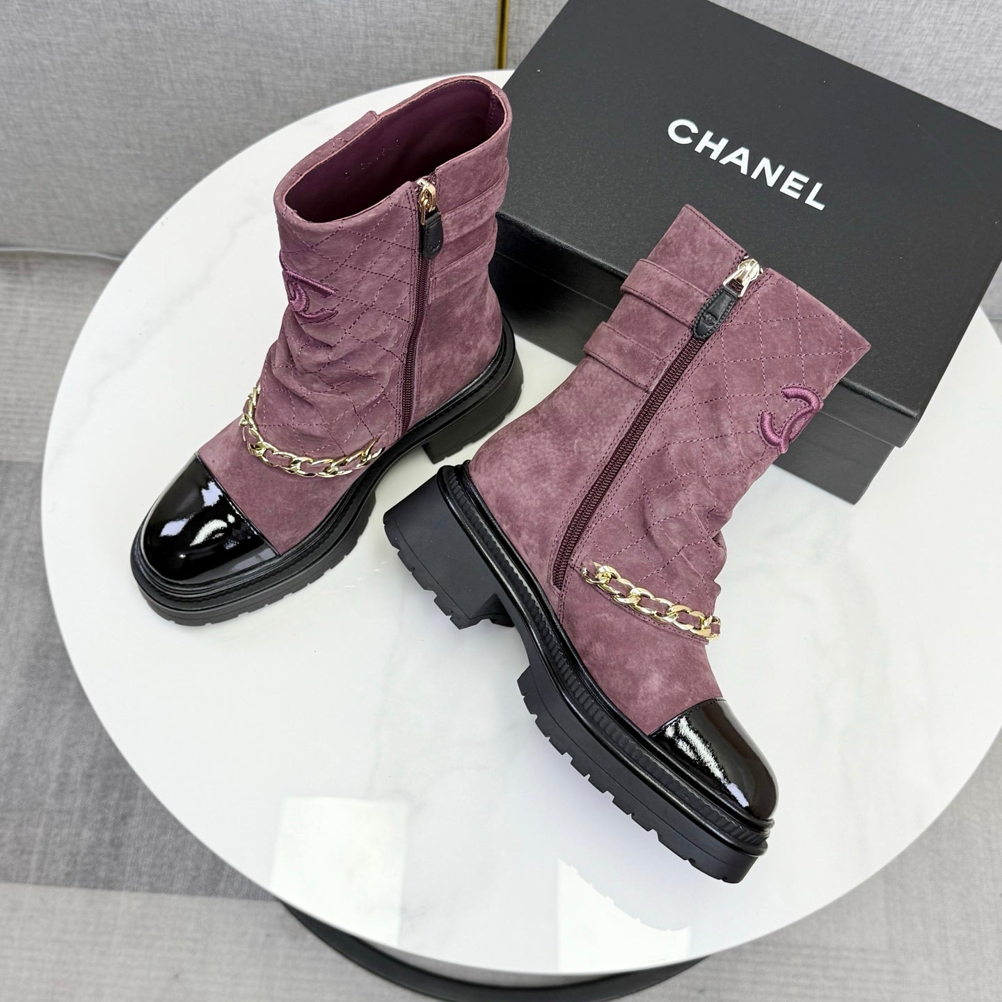 CC 25B AW Ankle Boots Old Rose Black Quited Suede Patent Leather 541068 GHW