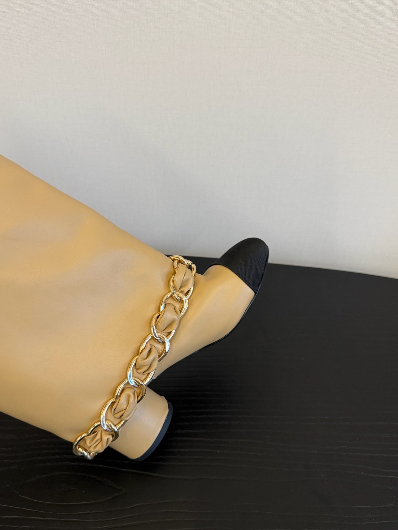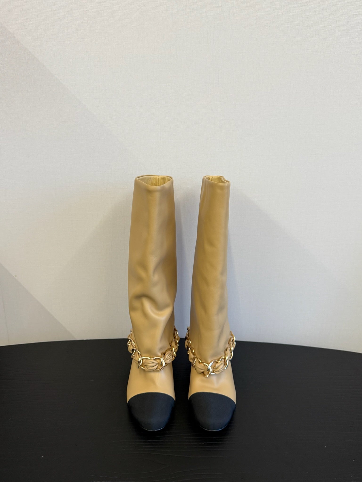 CC 25S High Boots With Chain Beige Black Cowhide & Sheepskin 417847