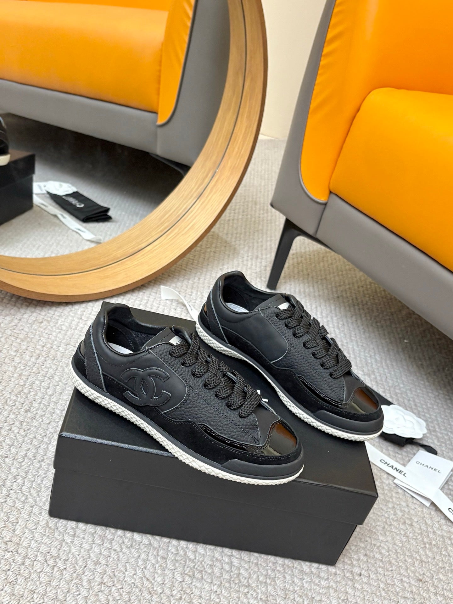 CC 25C Casual Sneakers Black Cowhide Suede Patent Leather 528156