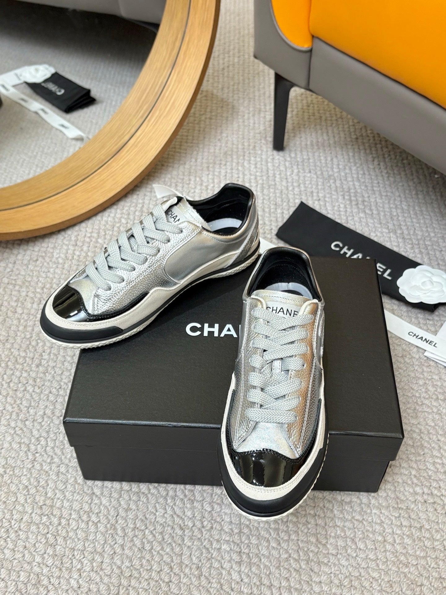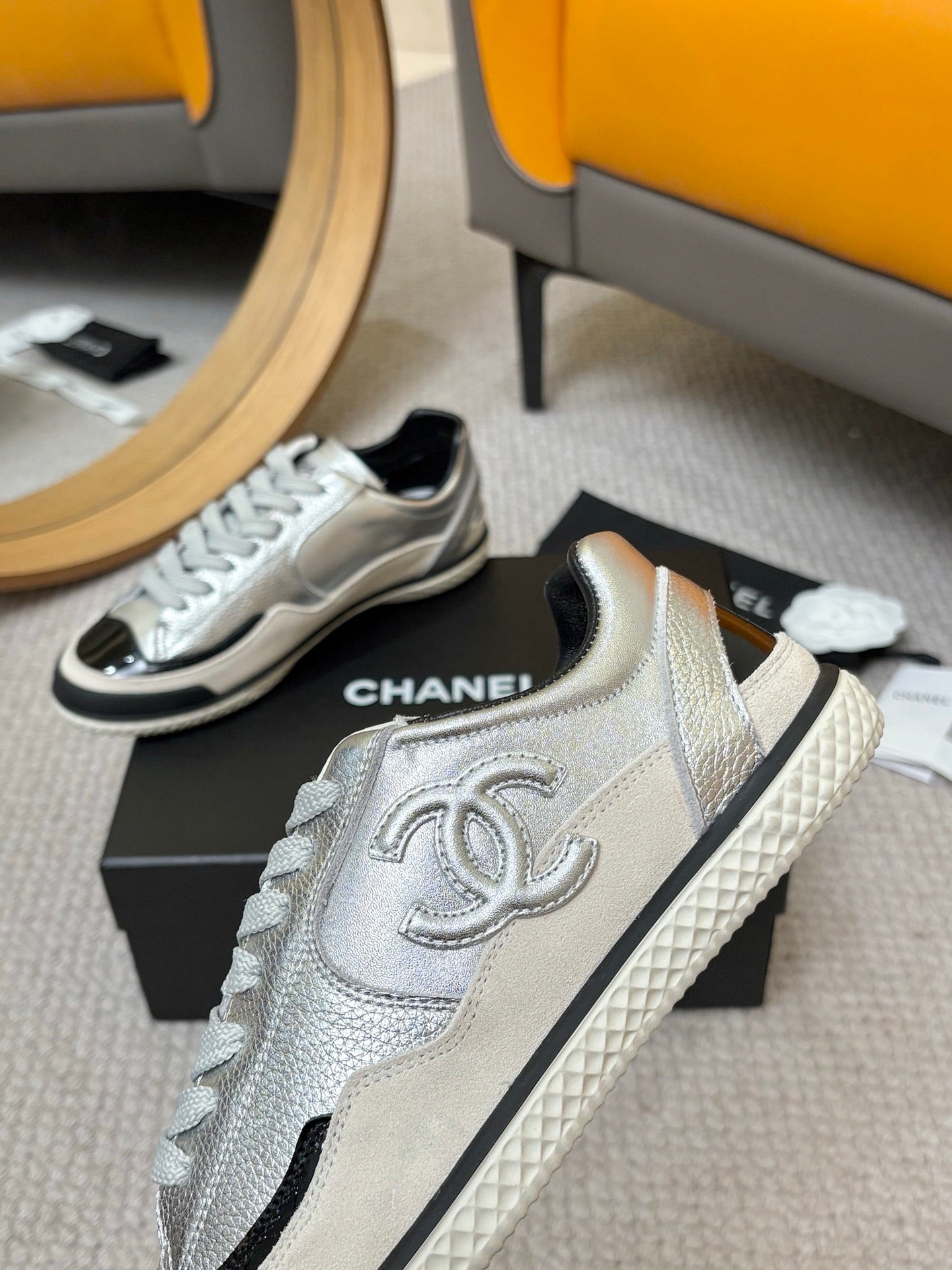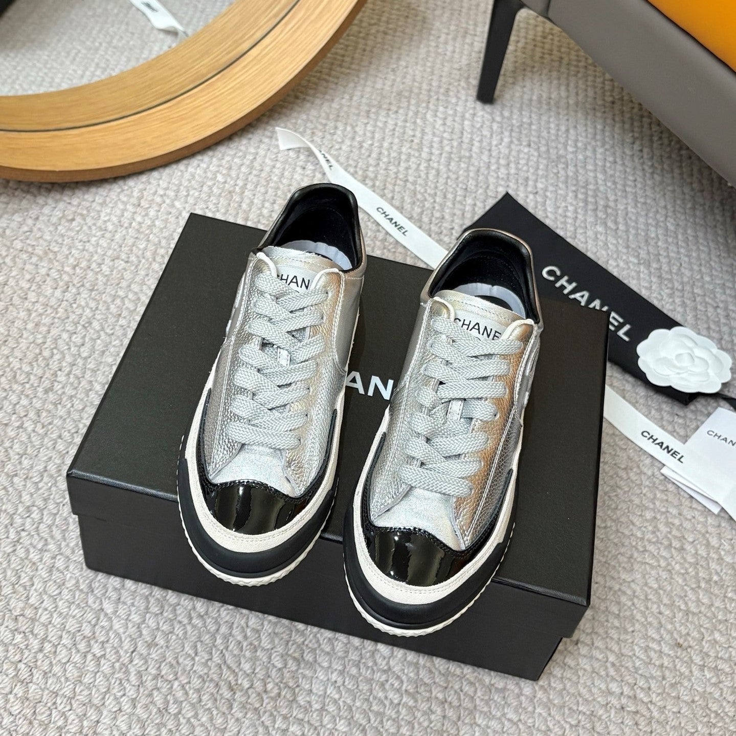 CC 25C Casual Sneakers Sliver Black Cowhide Suede Patent Leather 528155