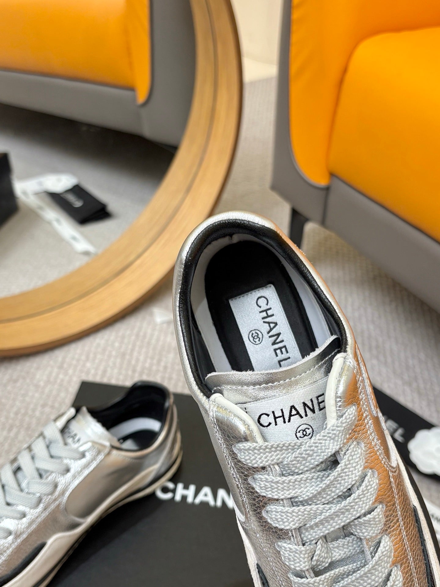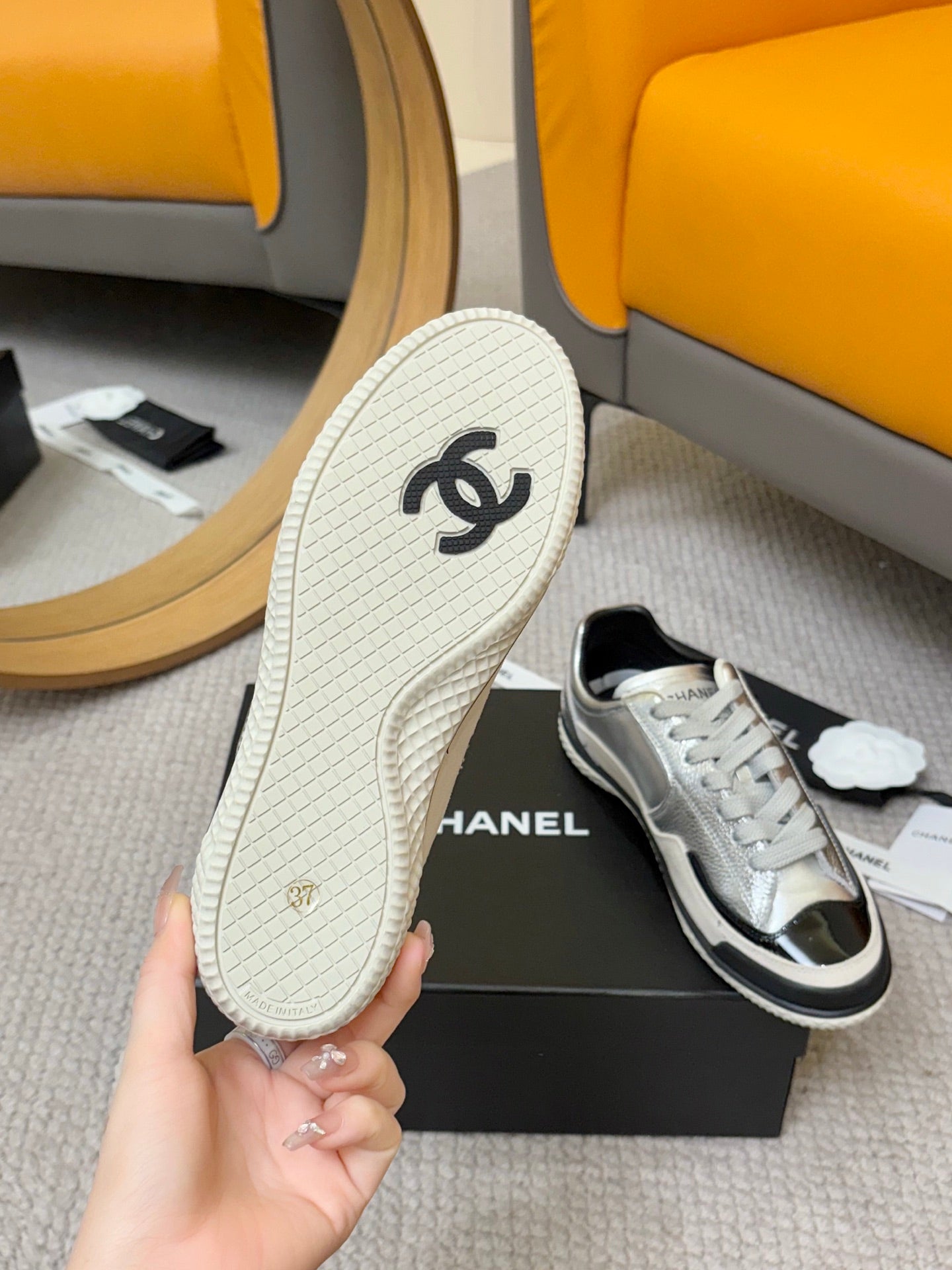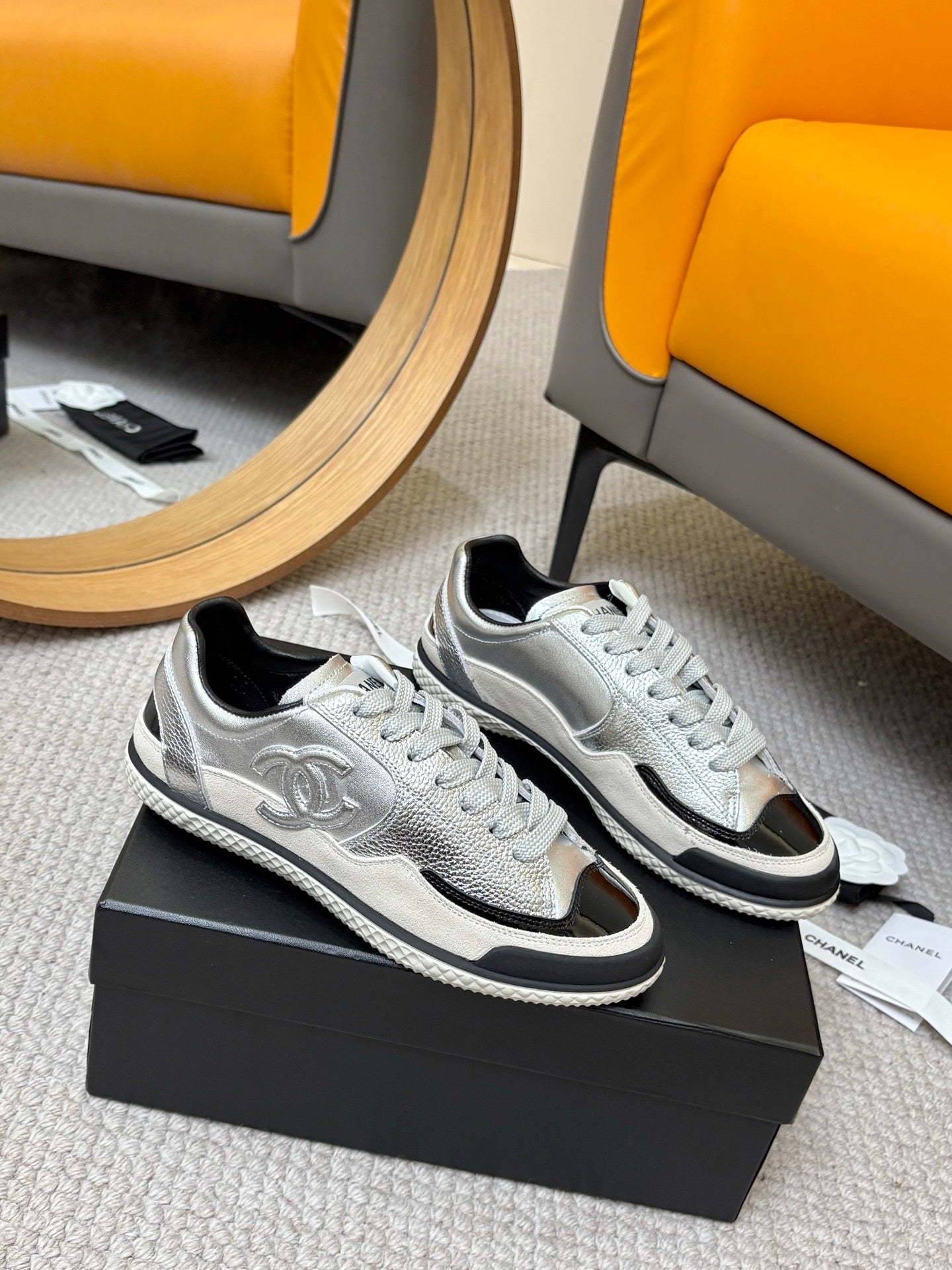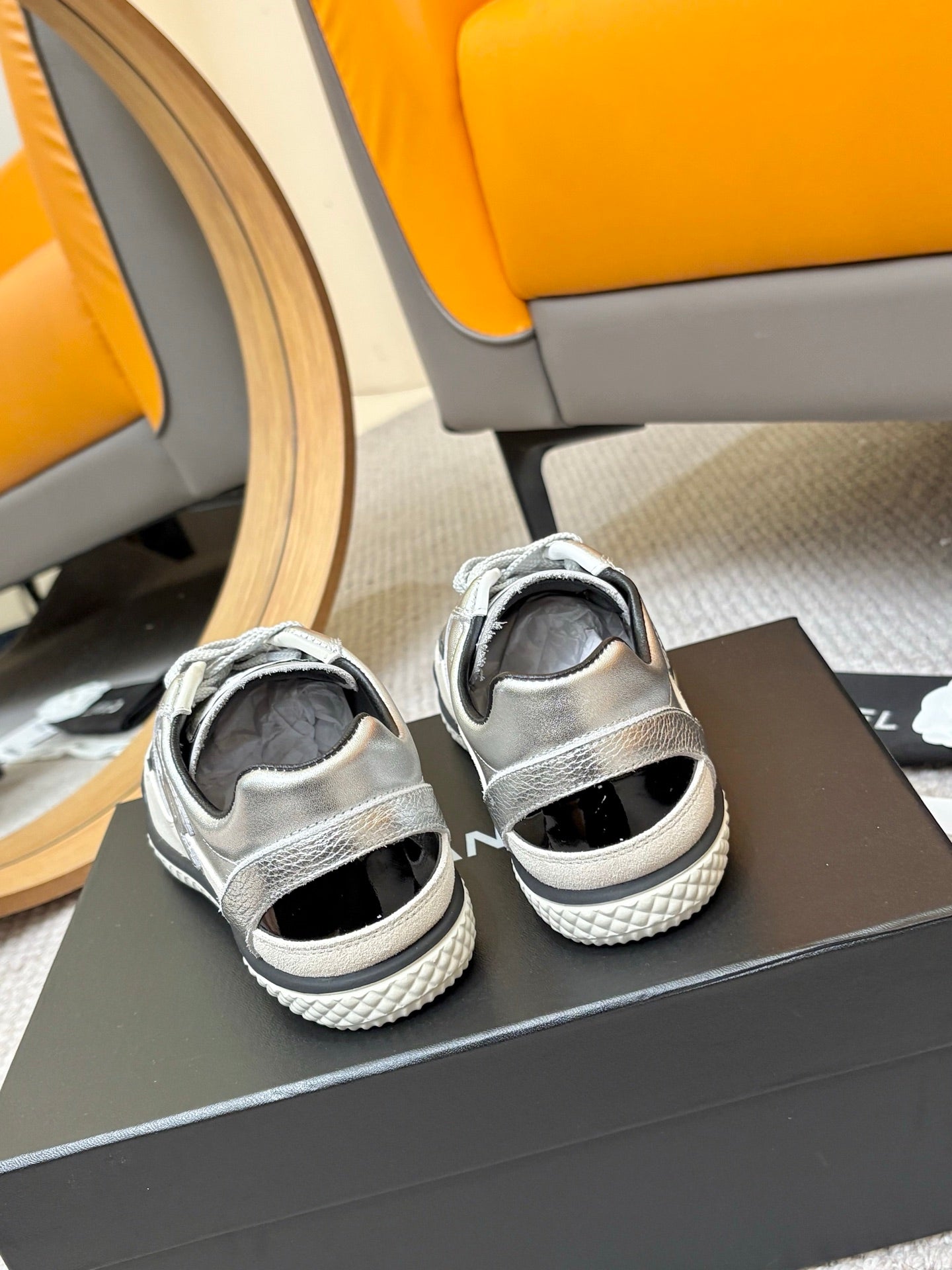 CC 25C Casual Sneakers Sliver Black Cowhide Suede Patent Leather 528155