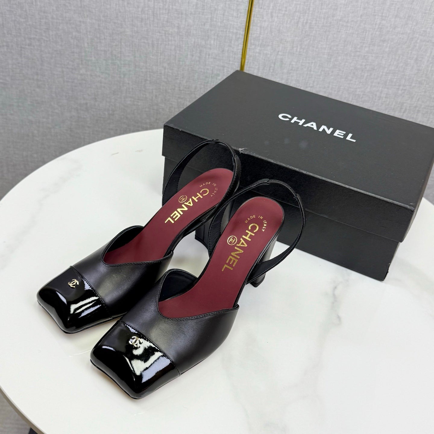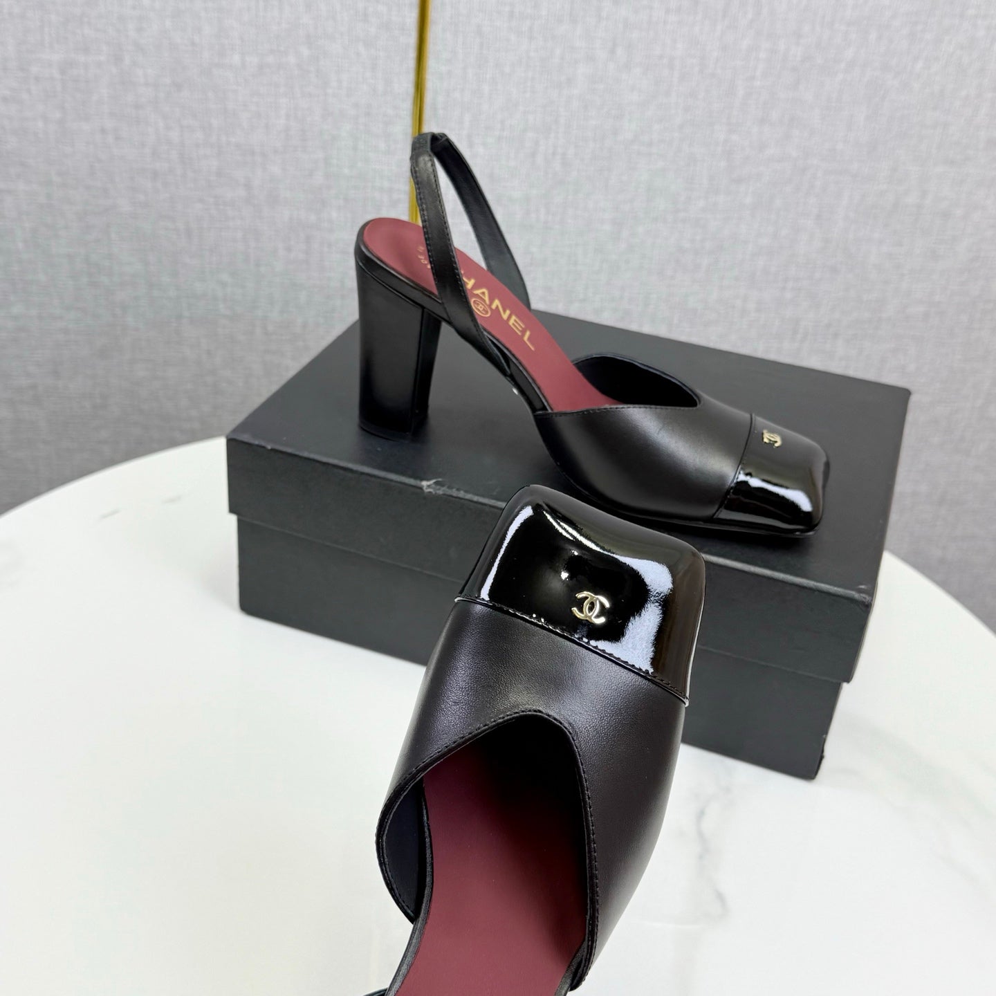 CC 25FW Square Toe Slingback Black Sheepskin Patent Leather 541134
