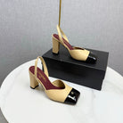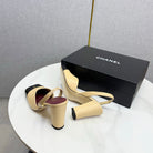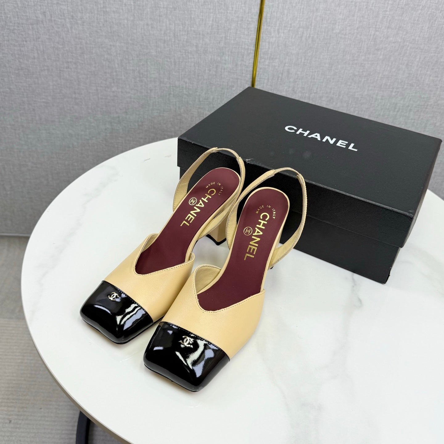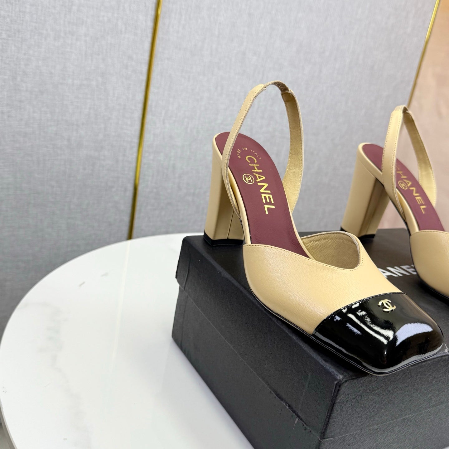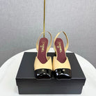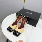 CC 25FW Square Toe Slingback White Beige Sheepskin Patent Leather 541135