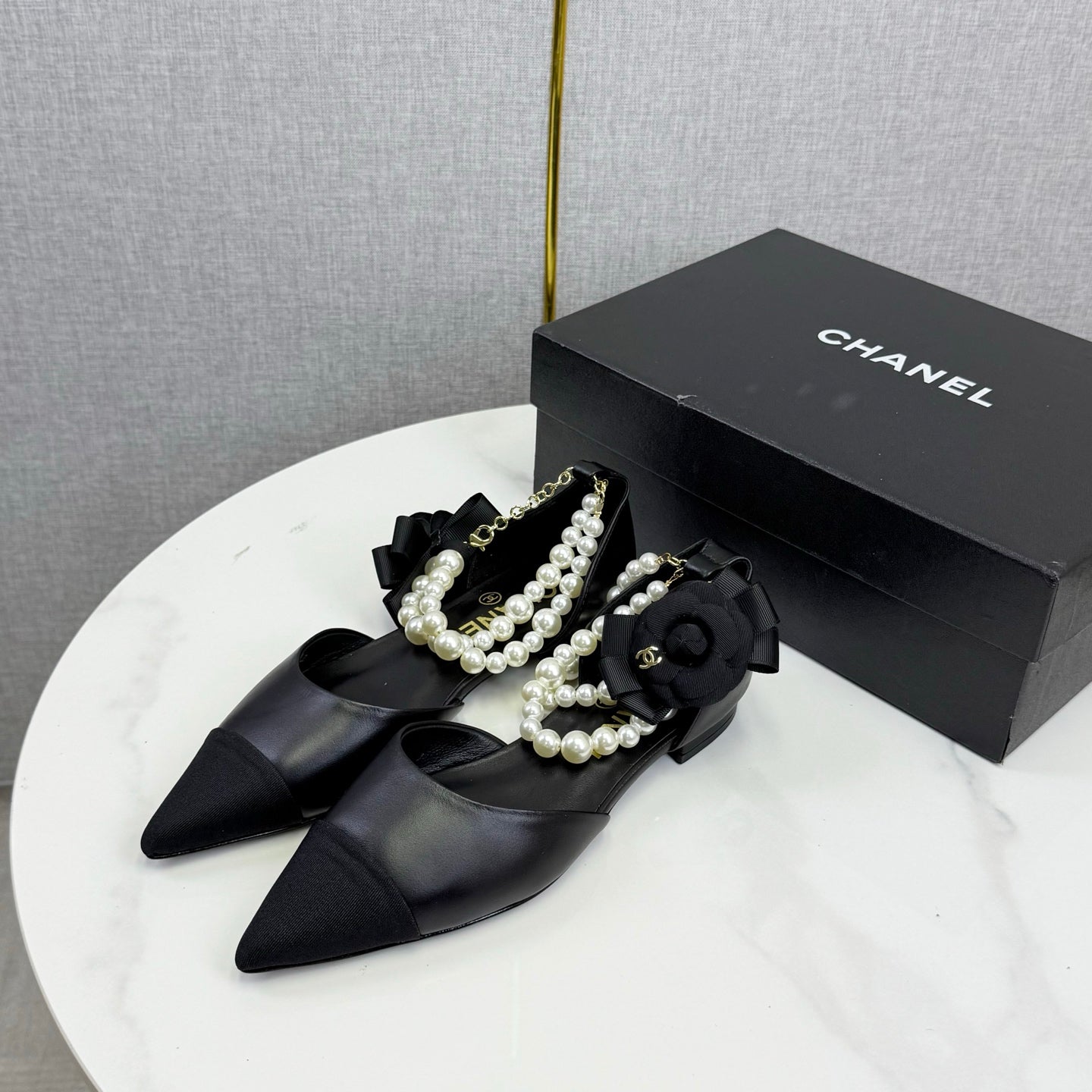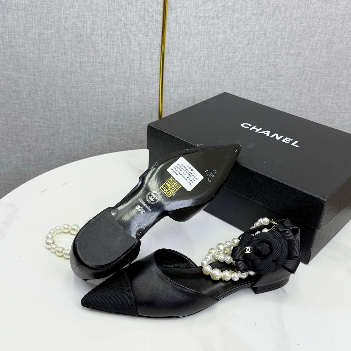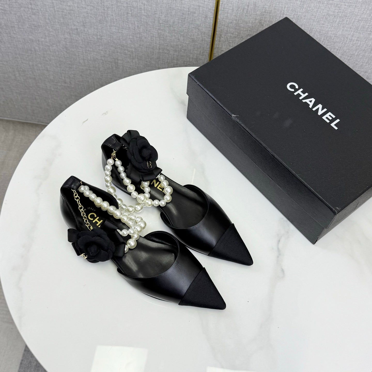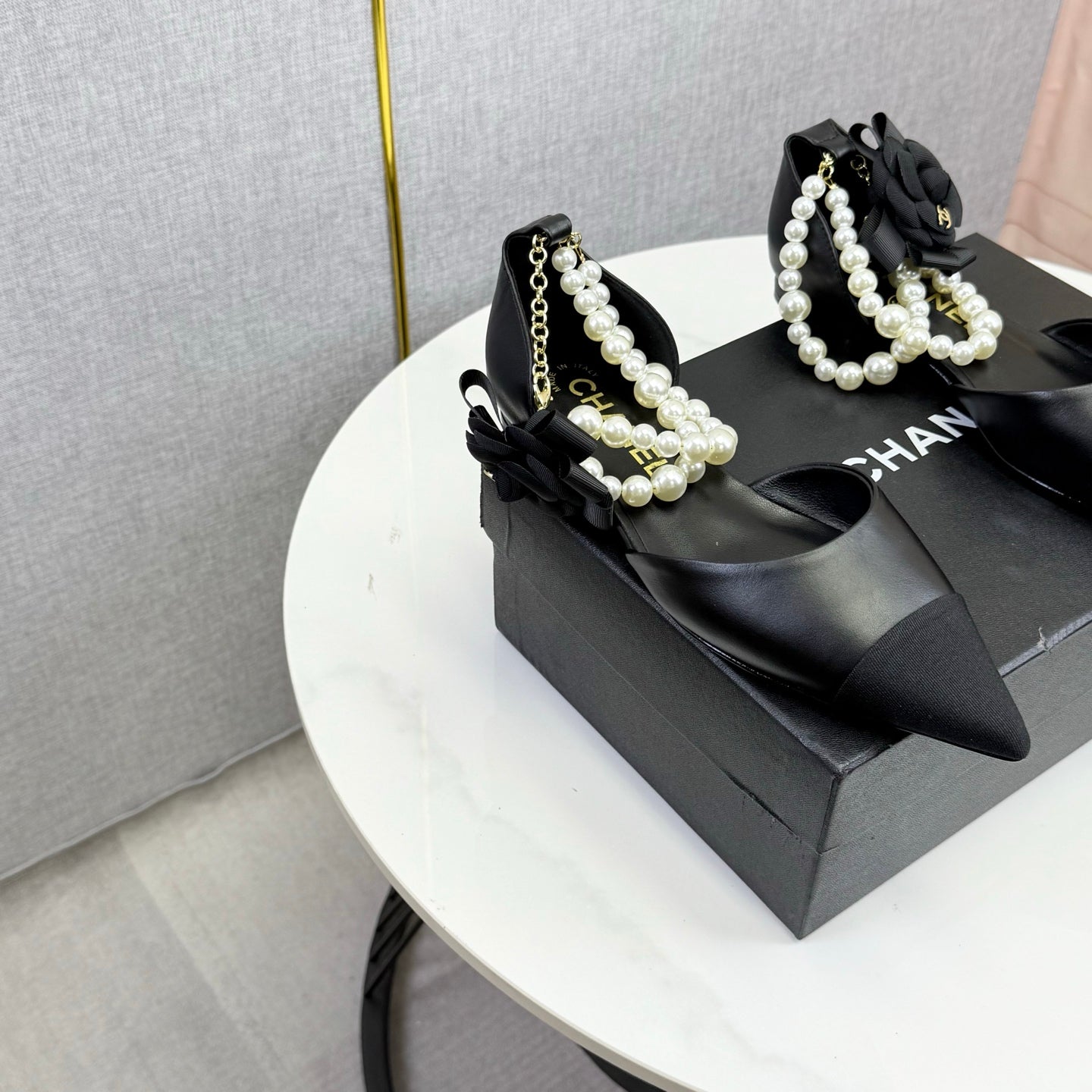 CC 25K New Pearl Chain Slingback Black Sheepskin Fabric 541065