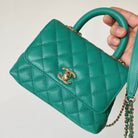 CC 25s Handle Bag 19 Pink Leather Green Caviar Gold Hardware