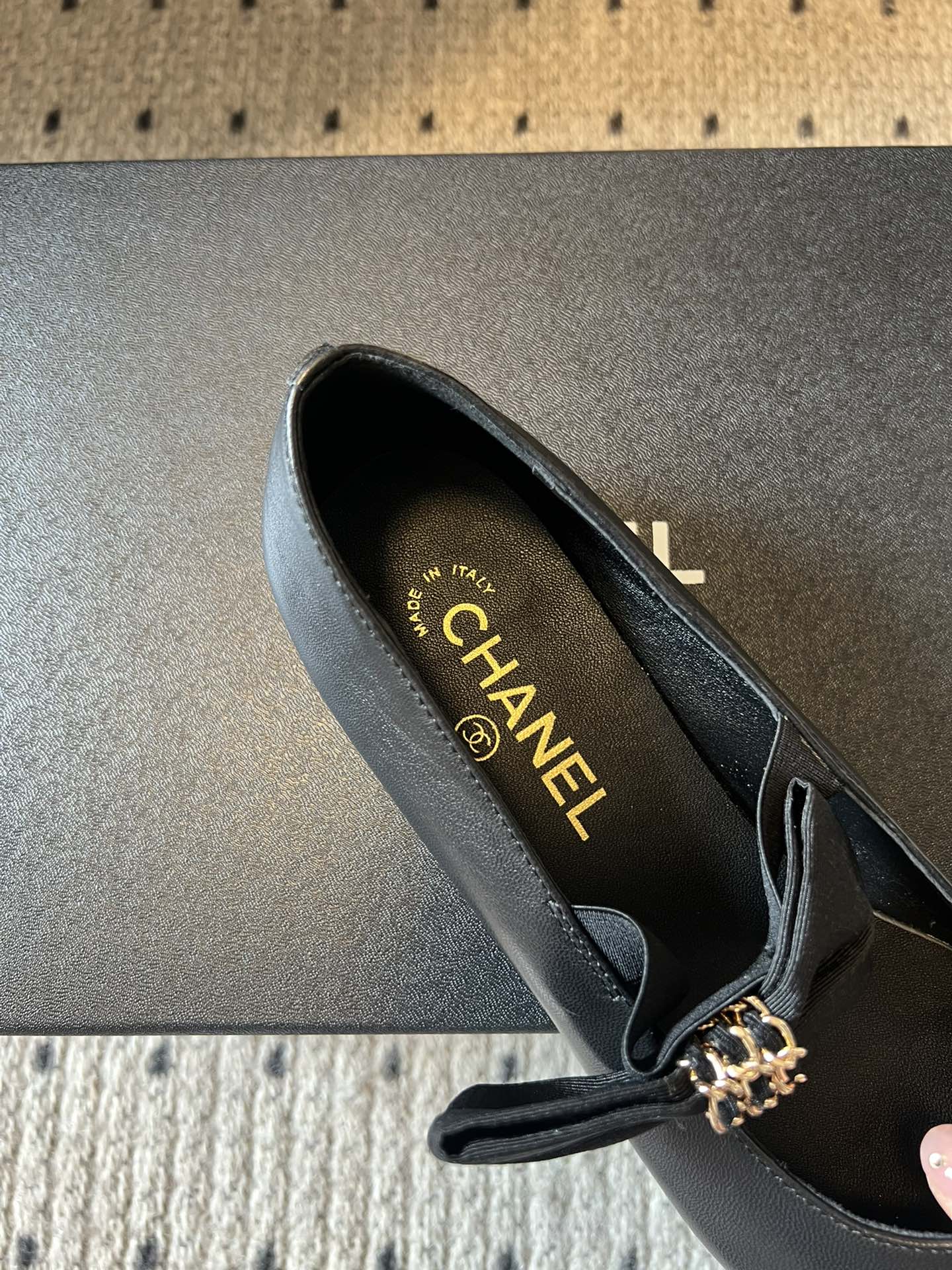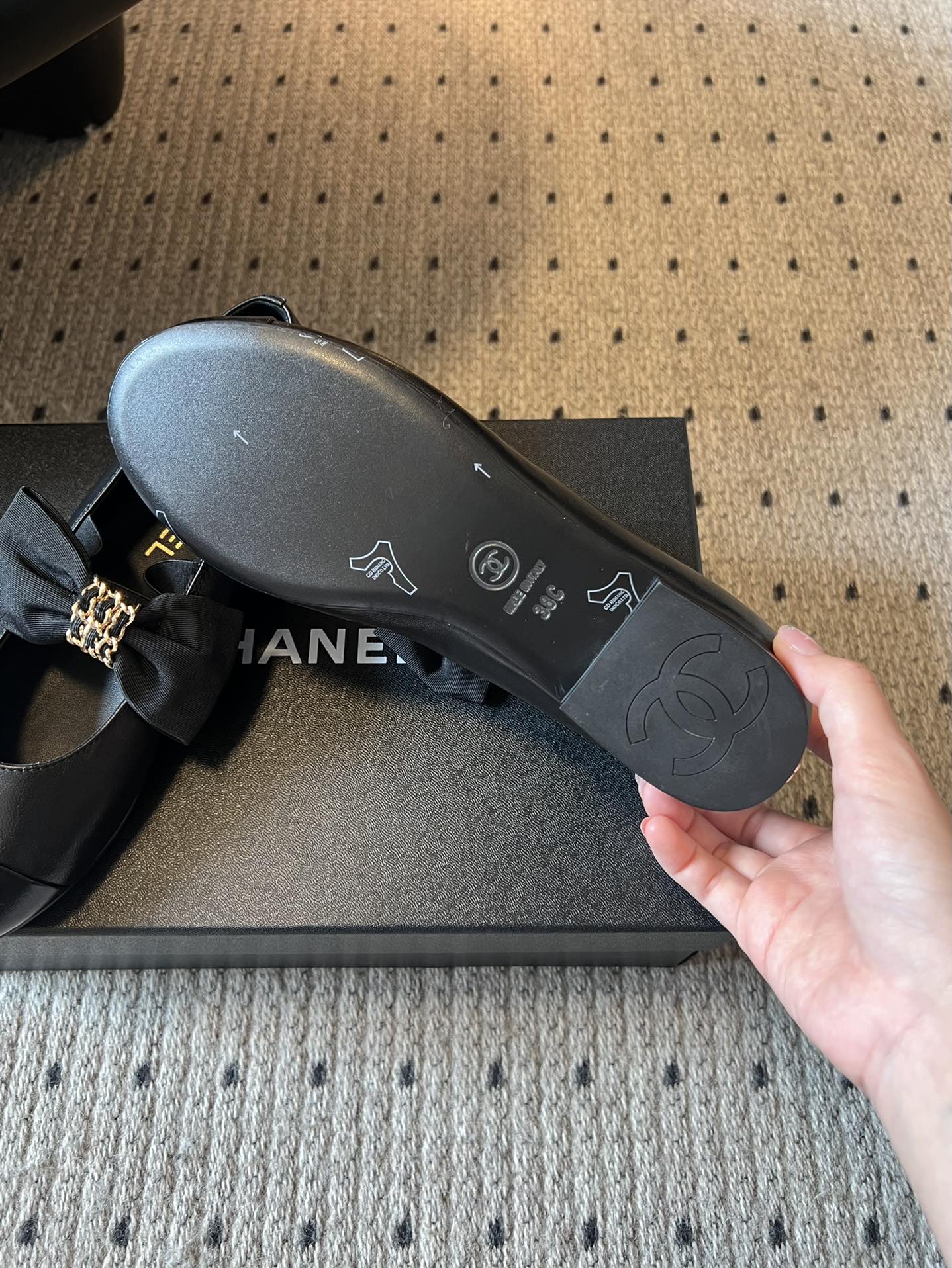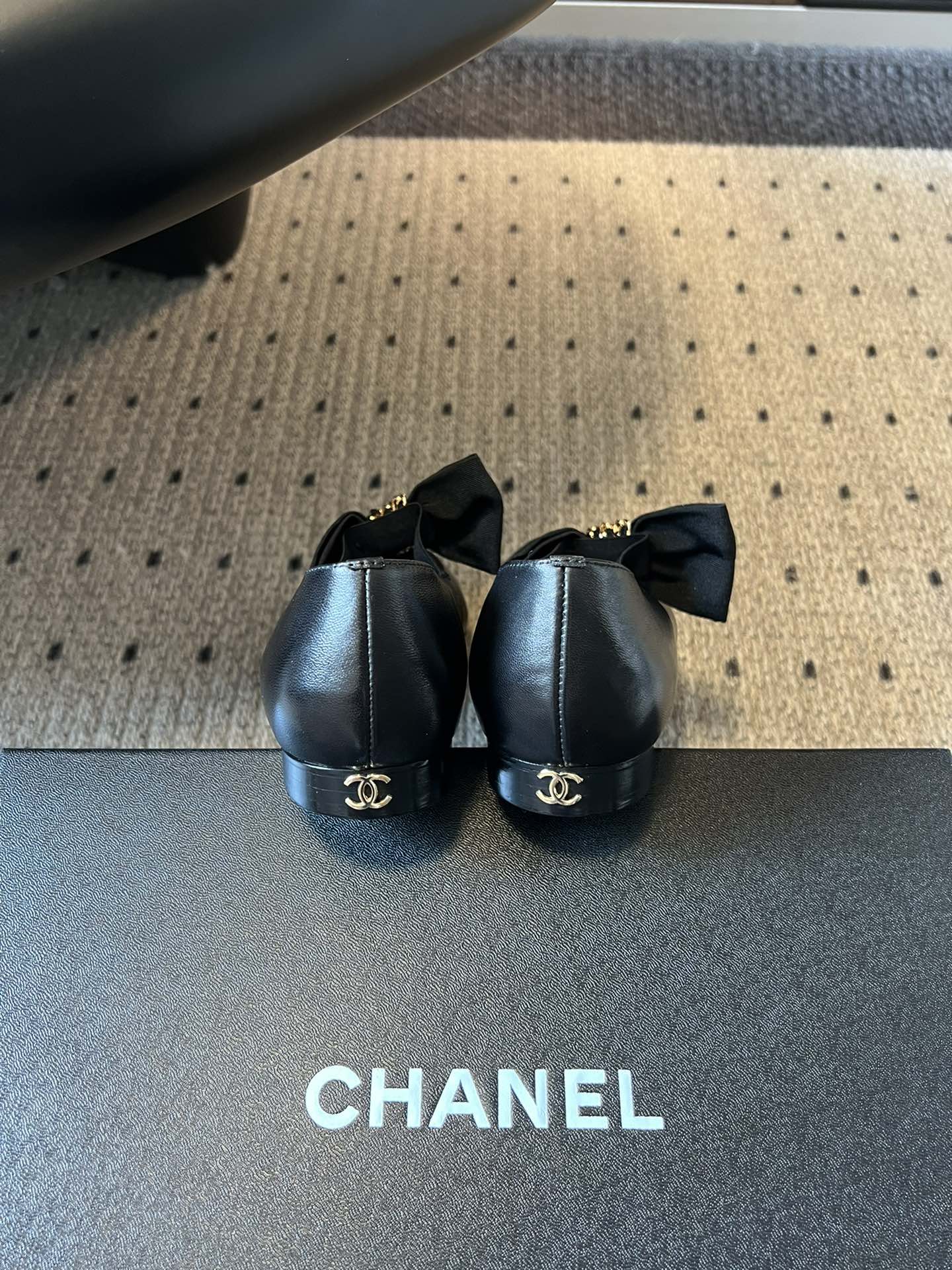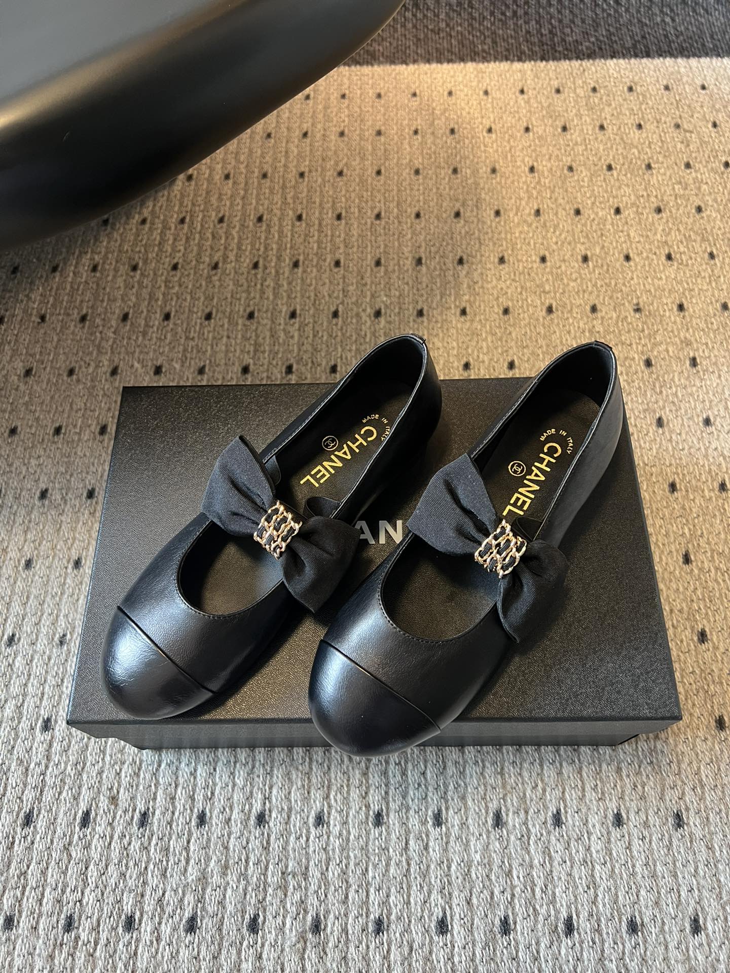 CC 25SS Bow Flat Shoes Black Sheepskin Frabic 530675