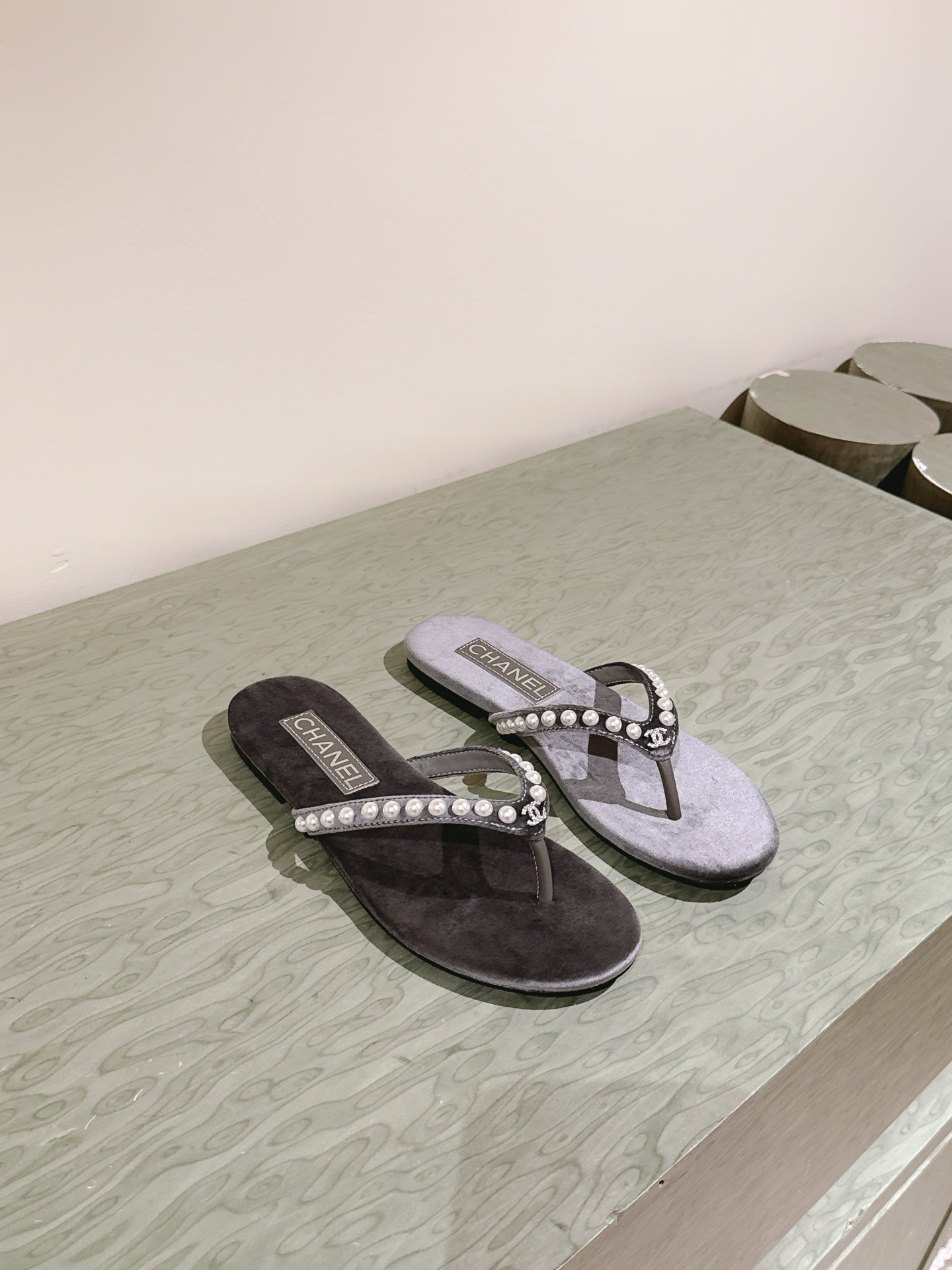 CC 25ss Pearl Thong Sandal Black Mix Grey Velvet 461640