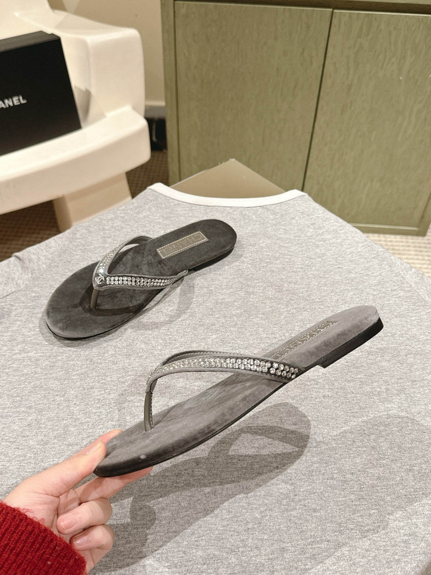 CC 25ss Rhinestone Thong Sandal Black Mix Grey Velvet 461635