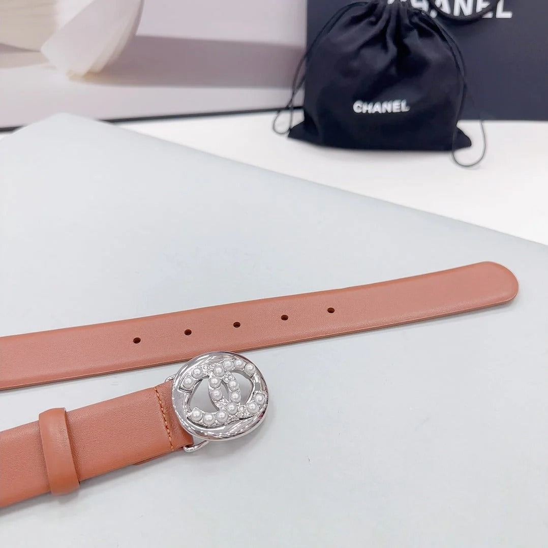 CC 30MM BELT IN ALLOY ORANGE CALFSKIN SILVER HARDWARE ATTACH PEARLS