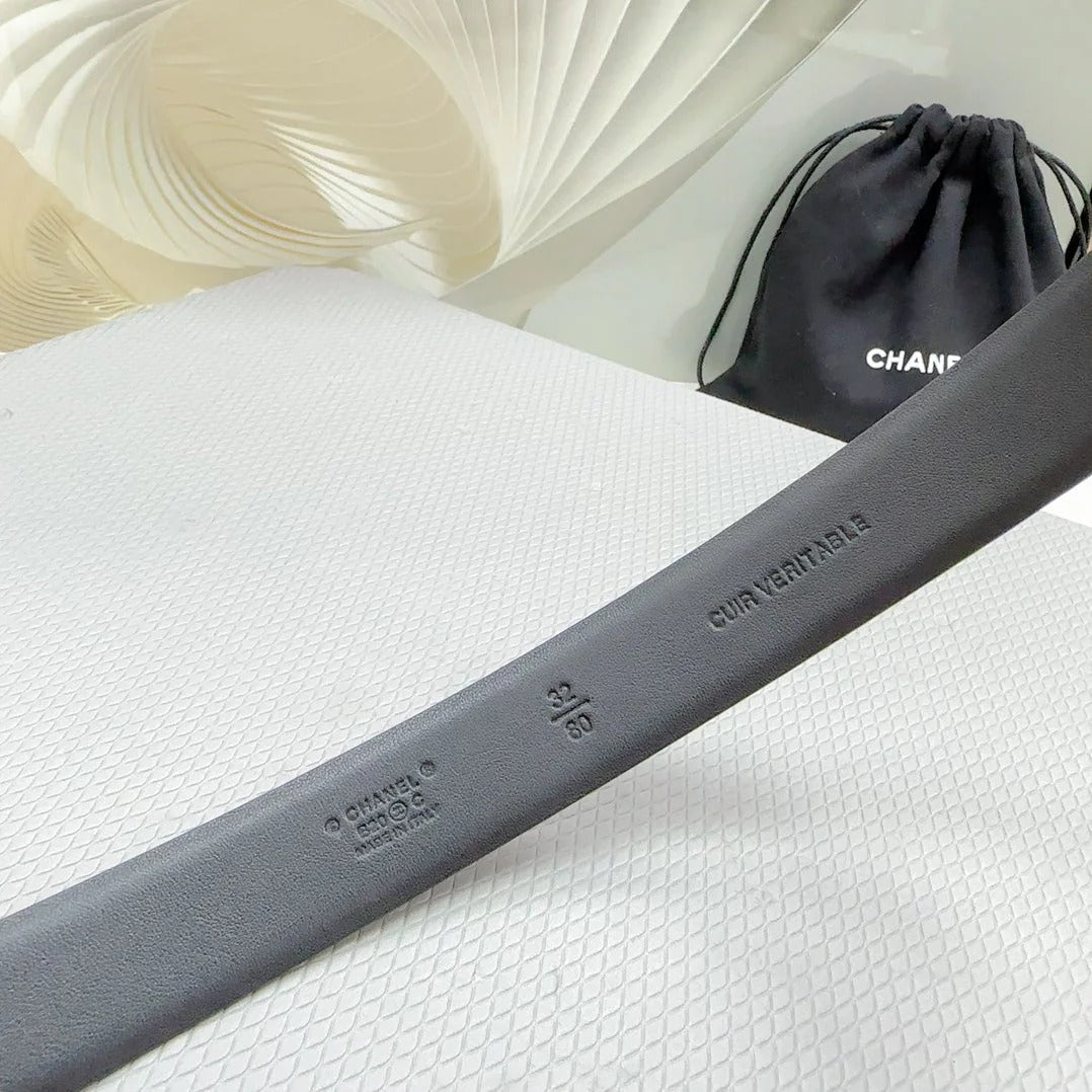 CC 30MM BELT IN BLACK SHINNY CALFSKIN WHITE LOGO