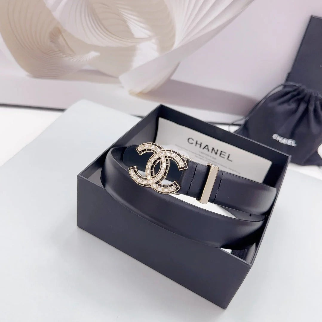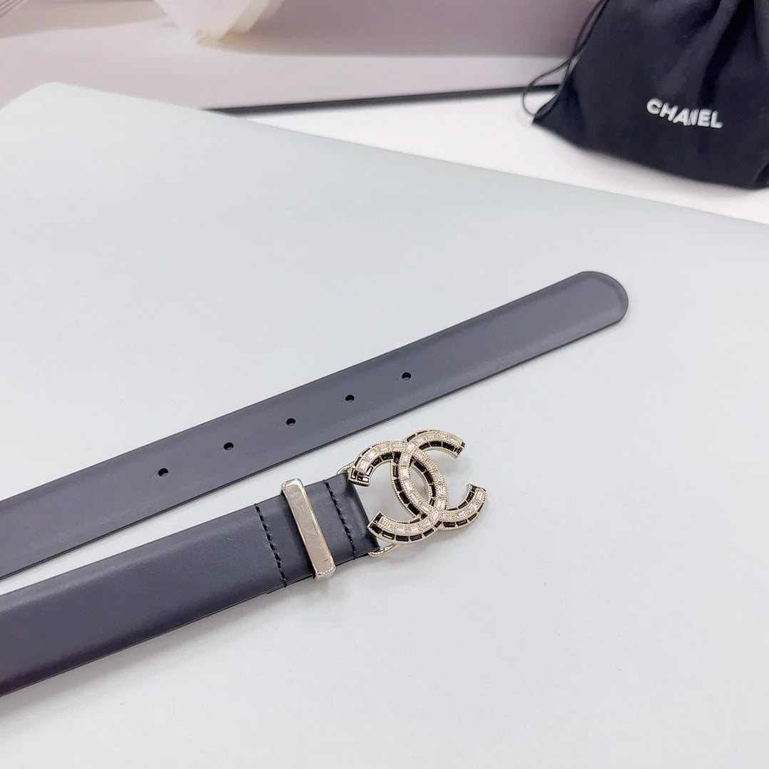 CC 30MM BELT IN BLACK SMOOTH CALFSKIN METAL LOGO