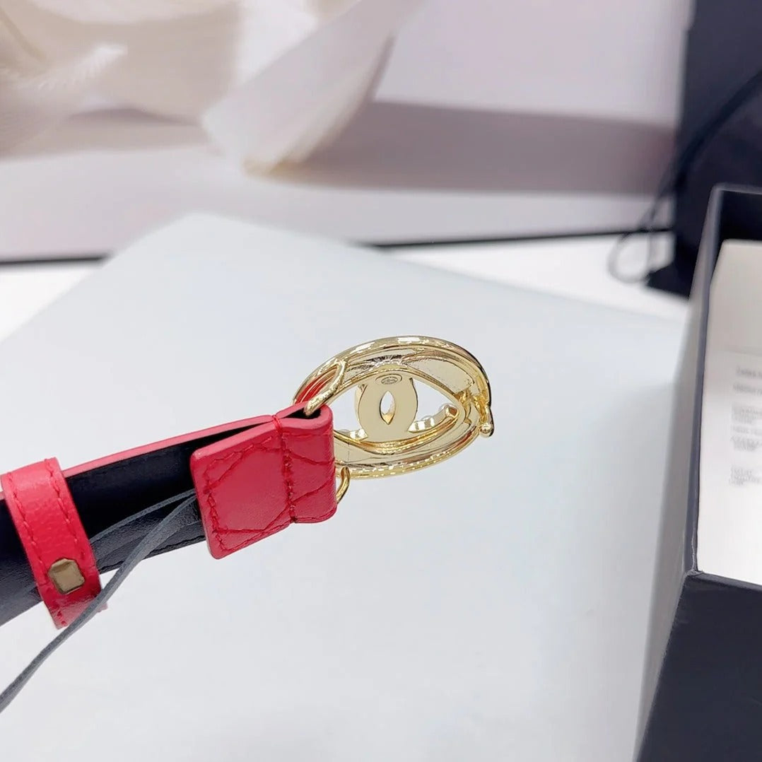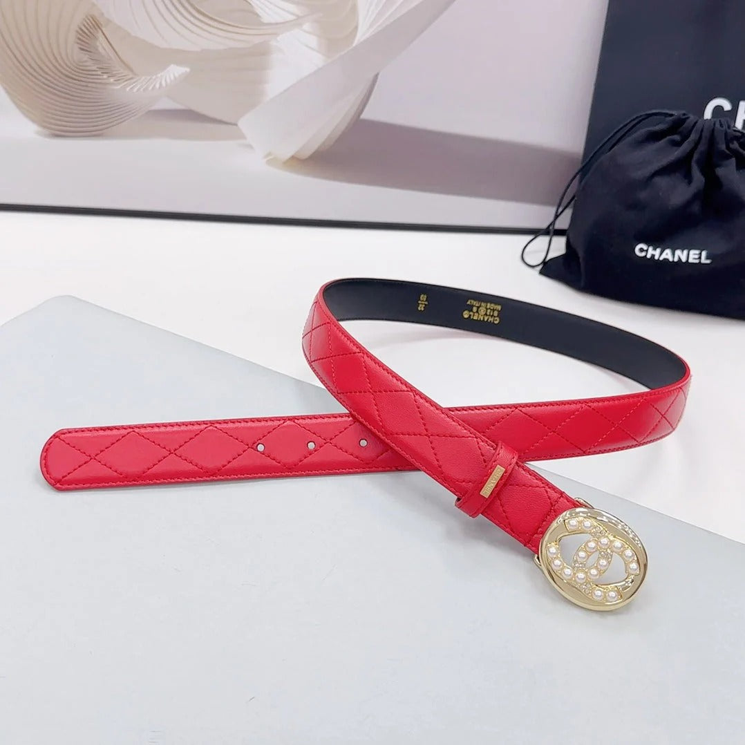 CC 30MM BELT IN CHERRY RED CALFSKIN GOLD HARDWARE ATTACH PEARLS
