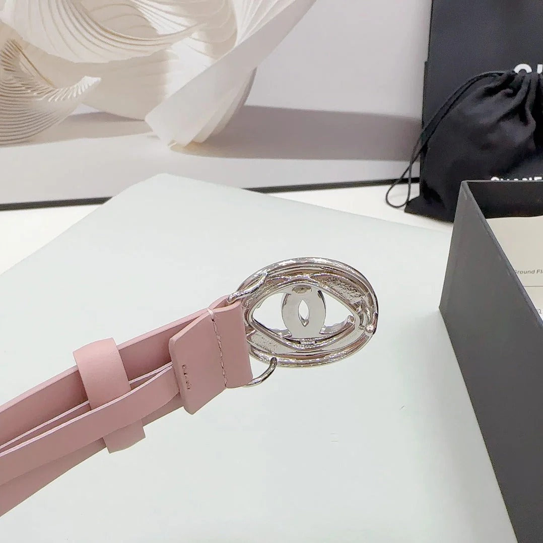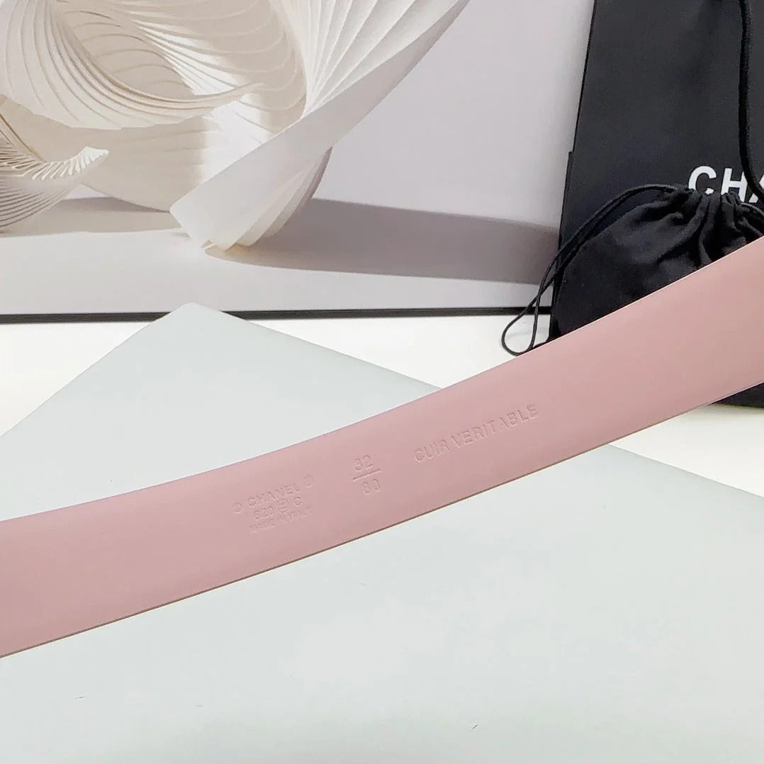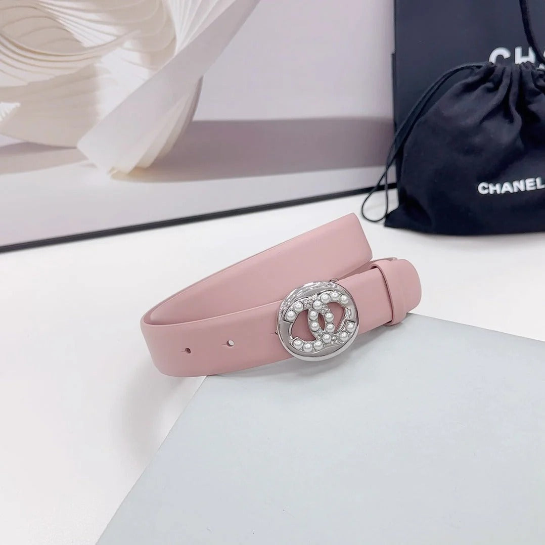 CC 30MM BELT IN FLAMINGO PINK CALFSKIN SILVER HARDWARE ATTACH PEARLS