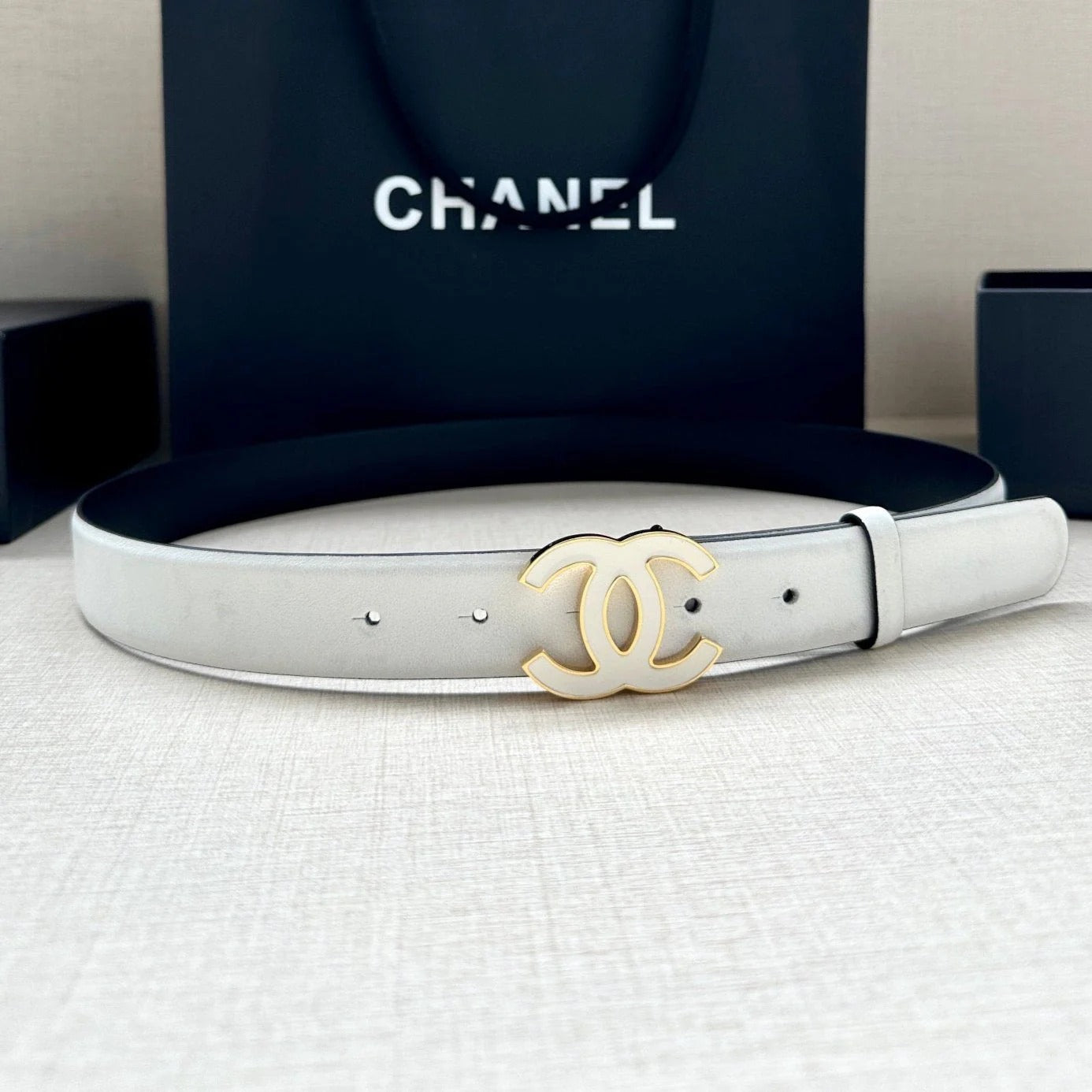 CC 30MM BELT IN FULL WHITE SMOOTH CALFSKIN METAL HARDWARE