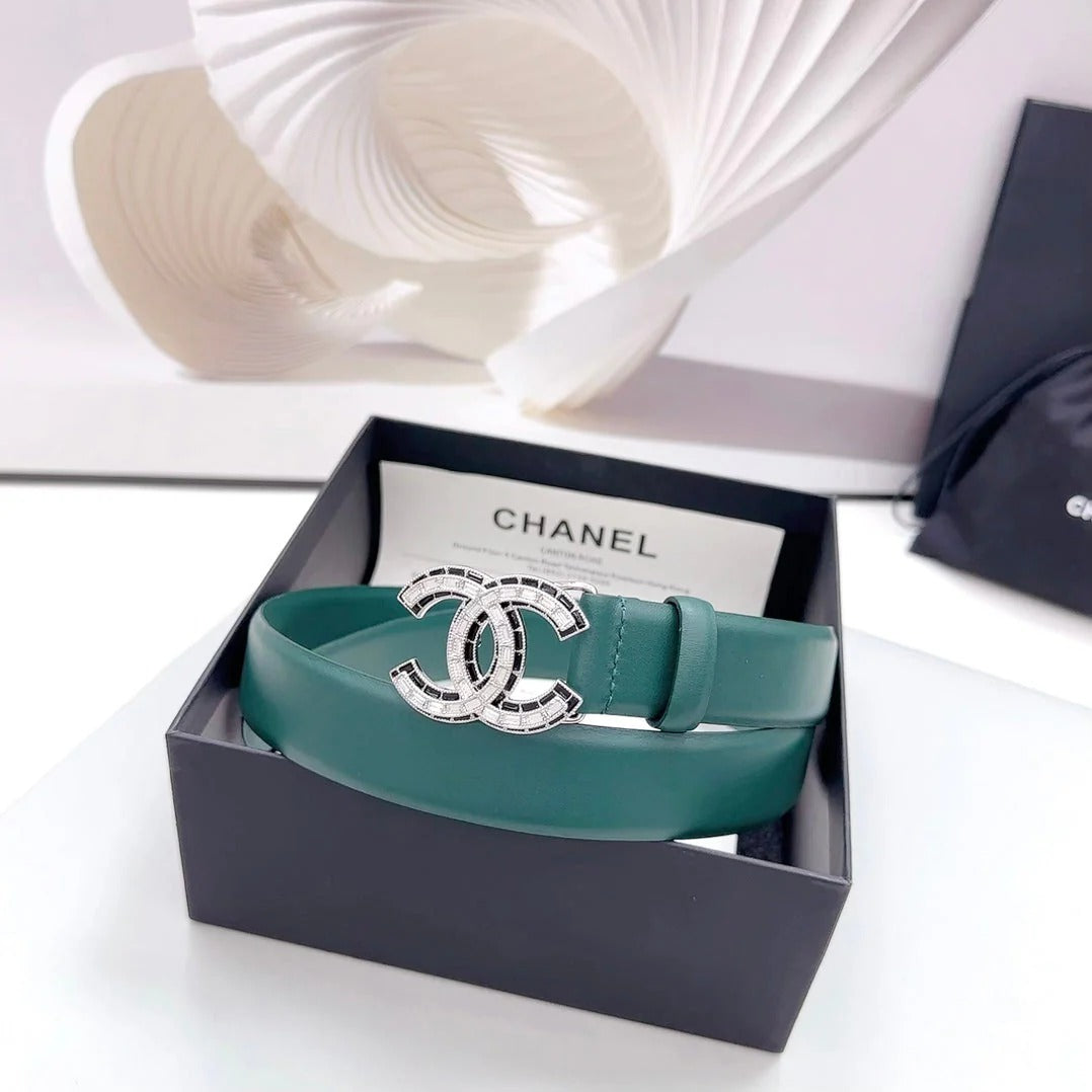 CC 30MM BELT IN GREEN FOREST CALFSKIN METAL HARDWARE