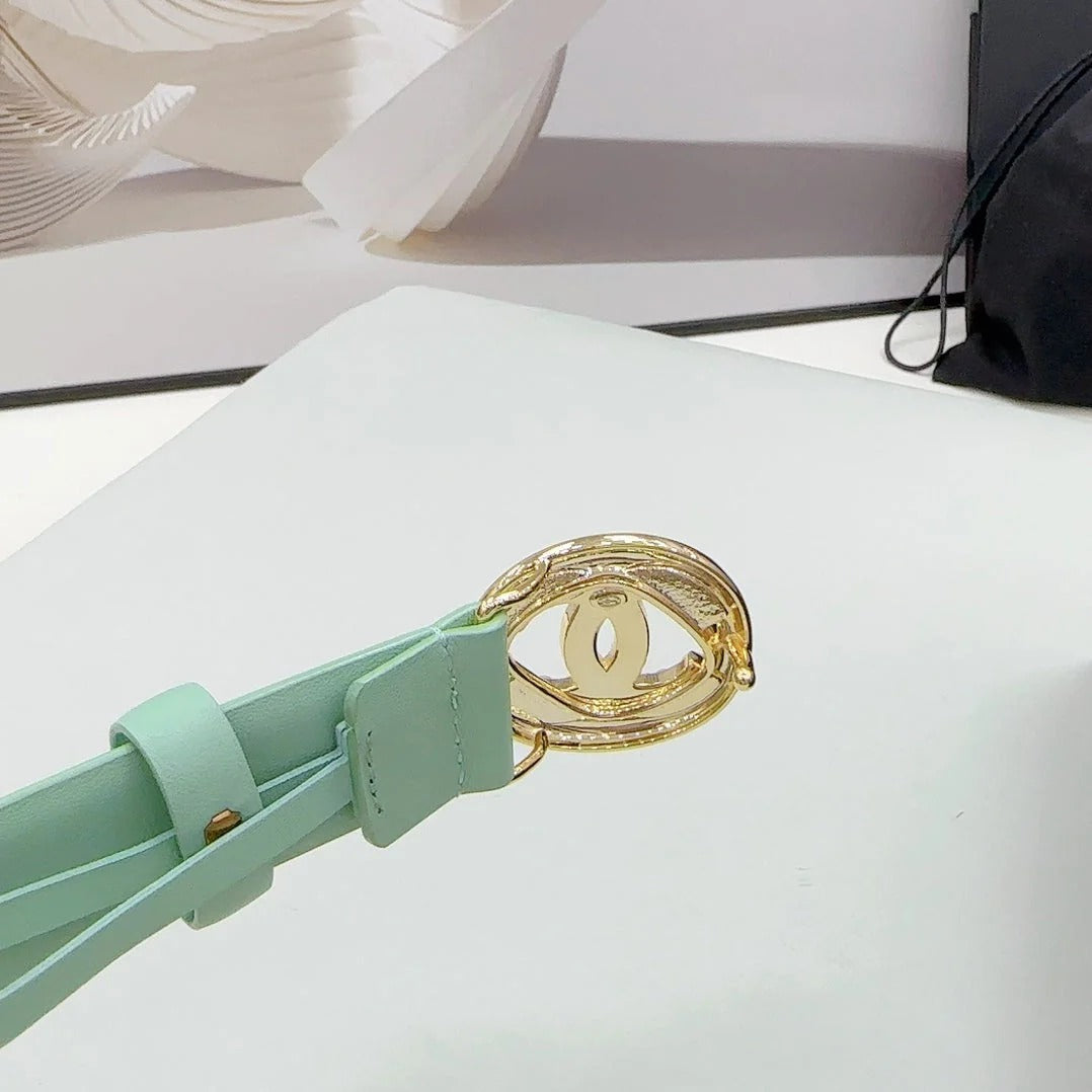 CC 30MM BELT IN GREEN MINT CALFSKIN GOLD HARDWARE ATTACH PEARLS