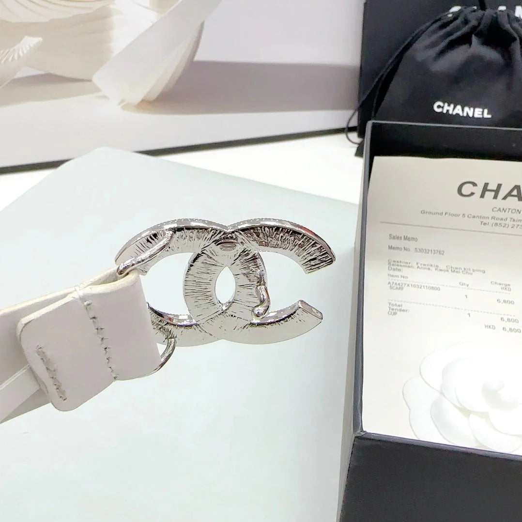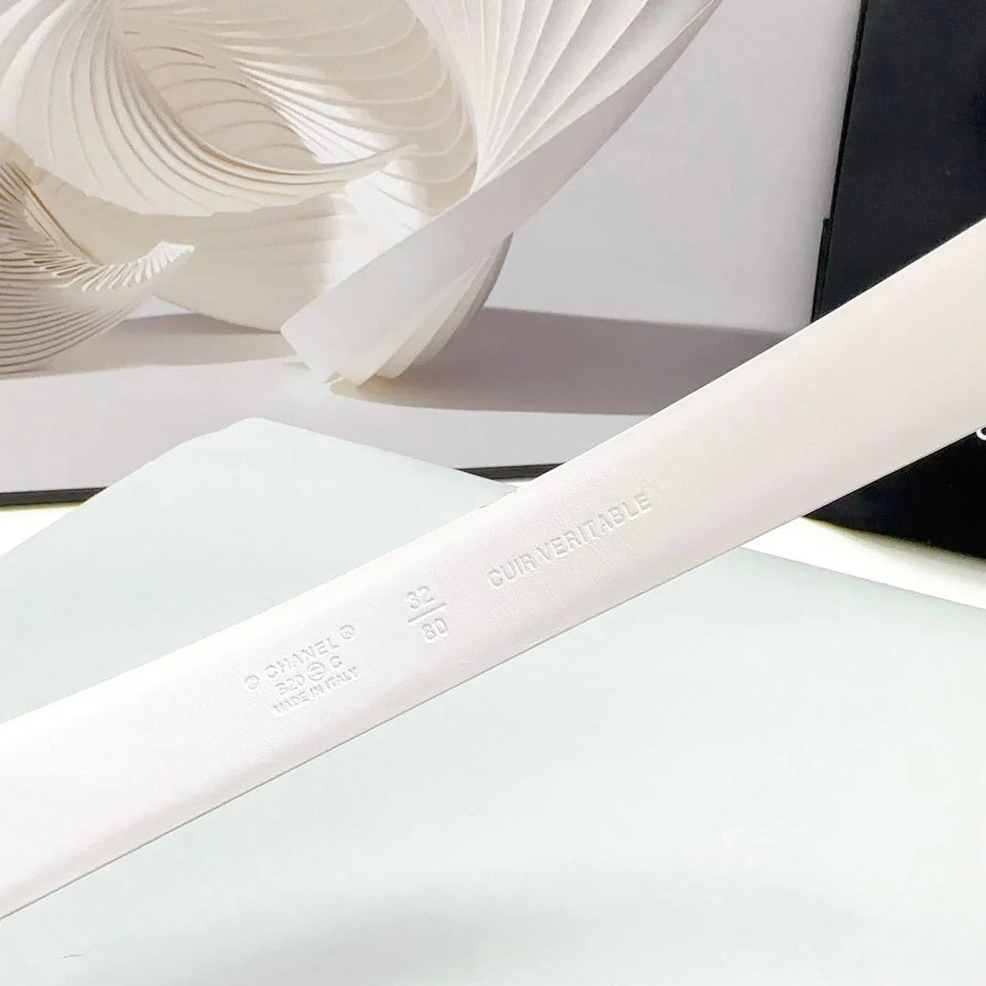 CC 30MM BELT IN WHITE CALFSKIN METAL HARDWARE
