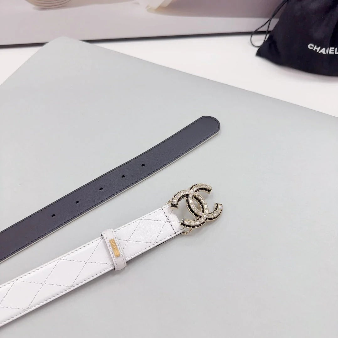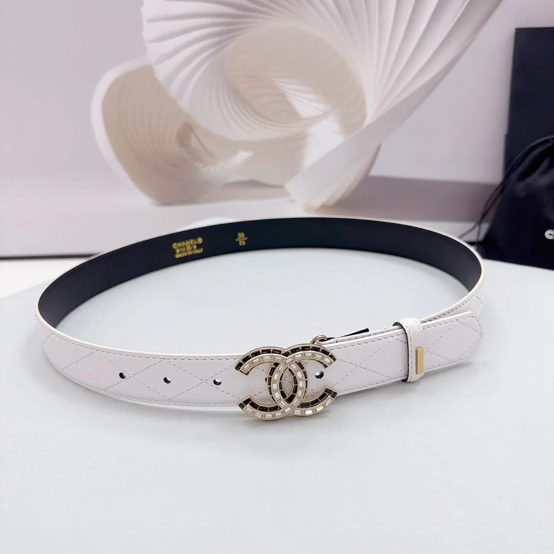 CC 30MM BELT IN WHITE EMBROIDERED CALFSKIN METAL HARDWARE