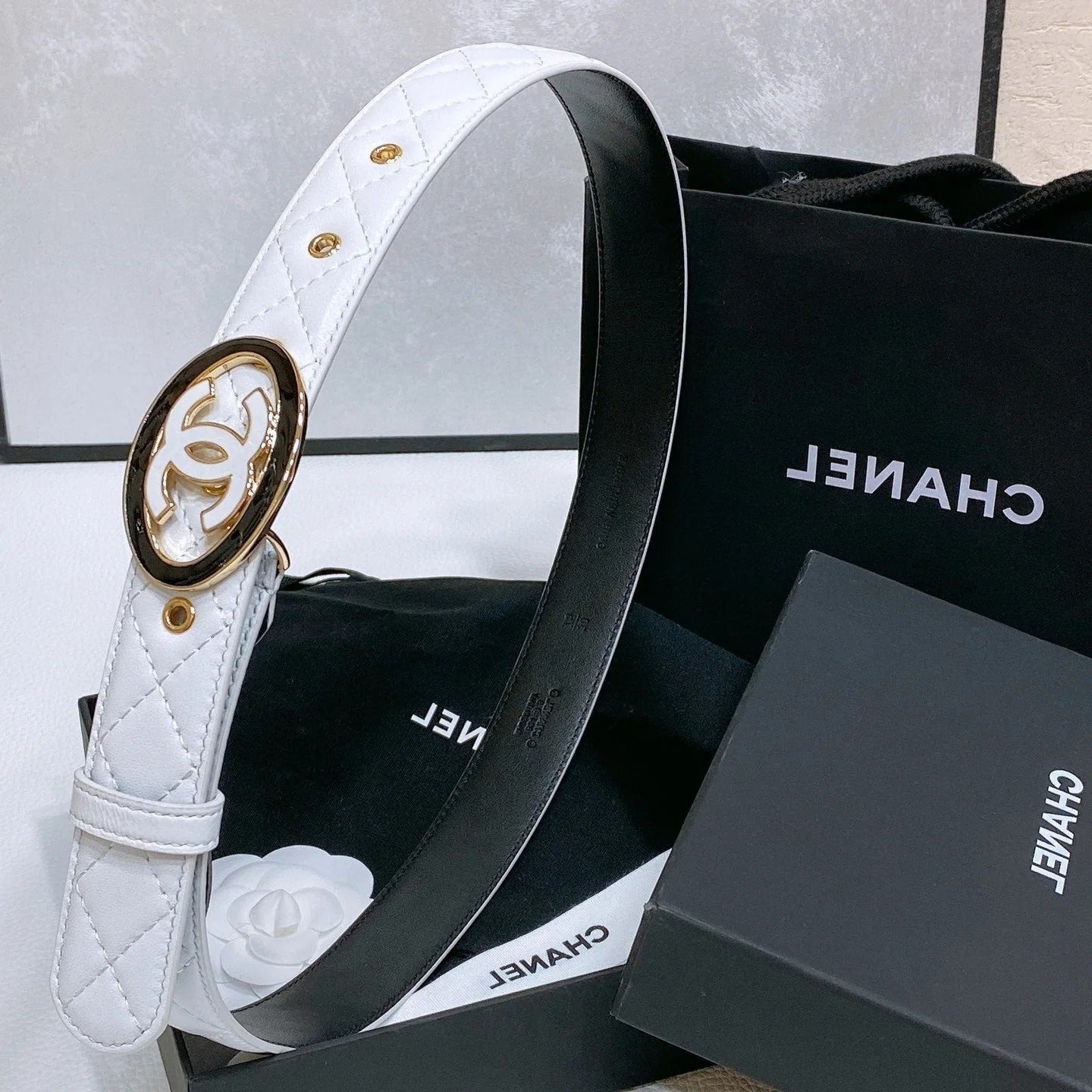 CC 30MM BELT IN WHITE EMBROIDERED CALFSKIN WHITE MIX BLACK METAL LOGO GOLD HARDWARE