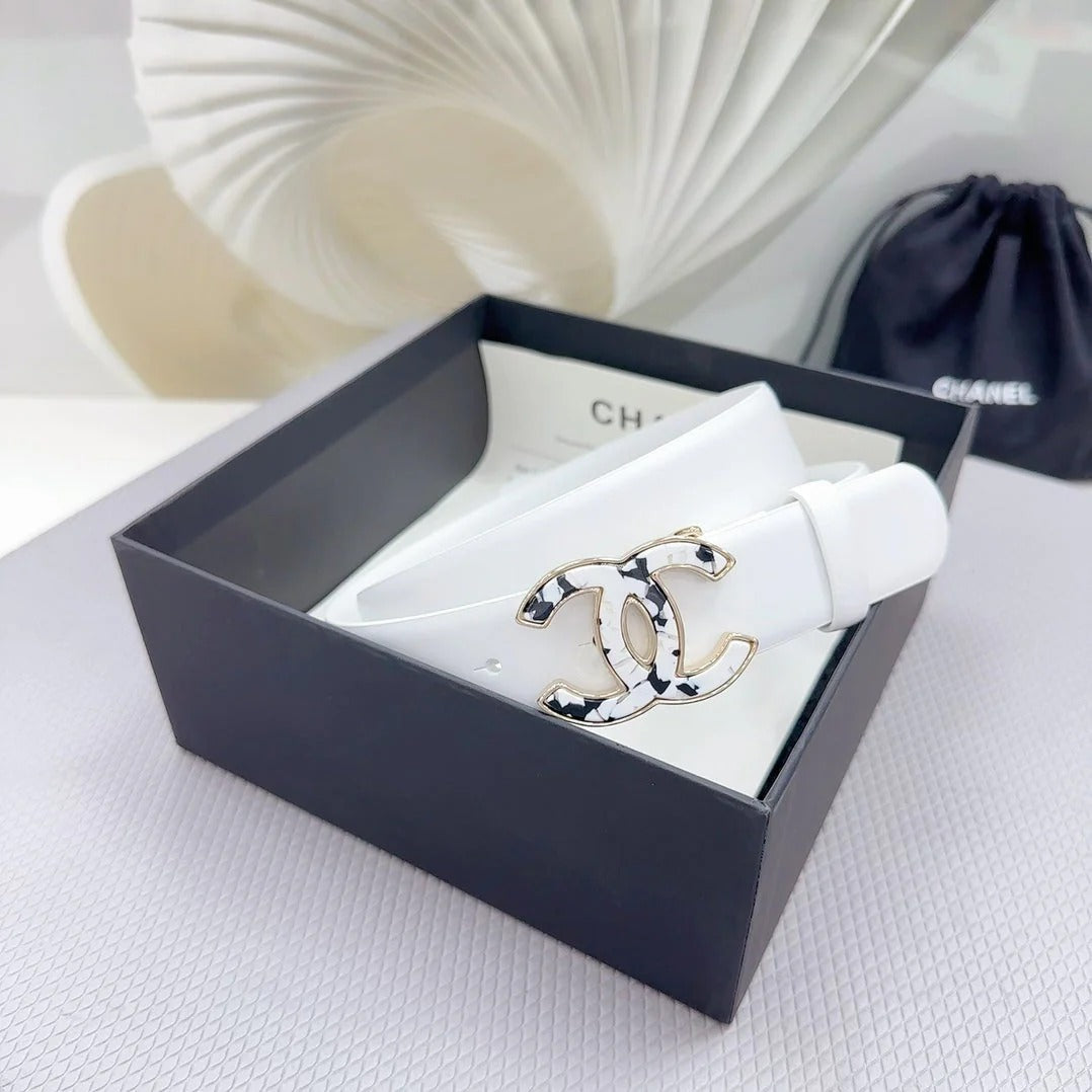 CC 30MM BELT IN WHITE SHINNY CALFSKIN WHITE LOGO