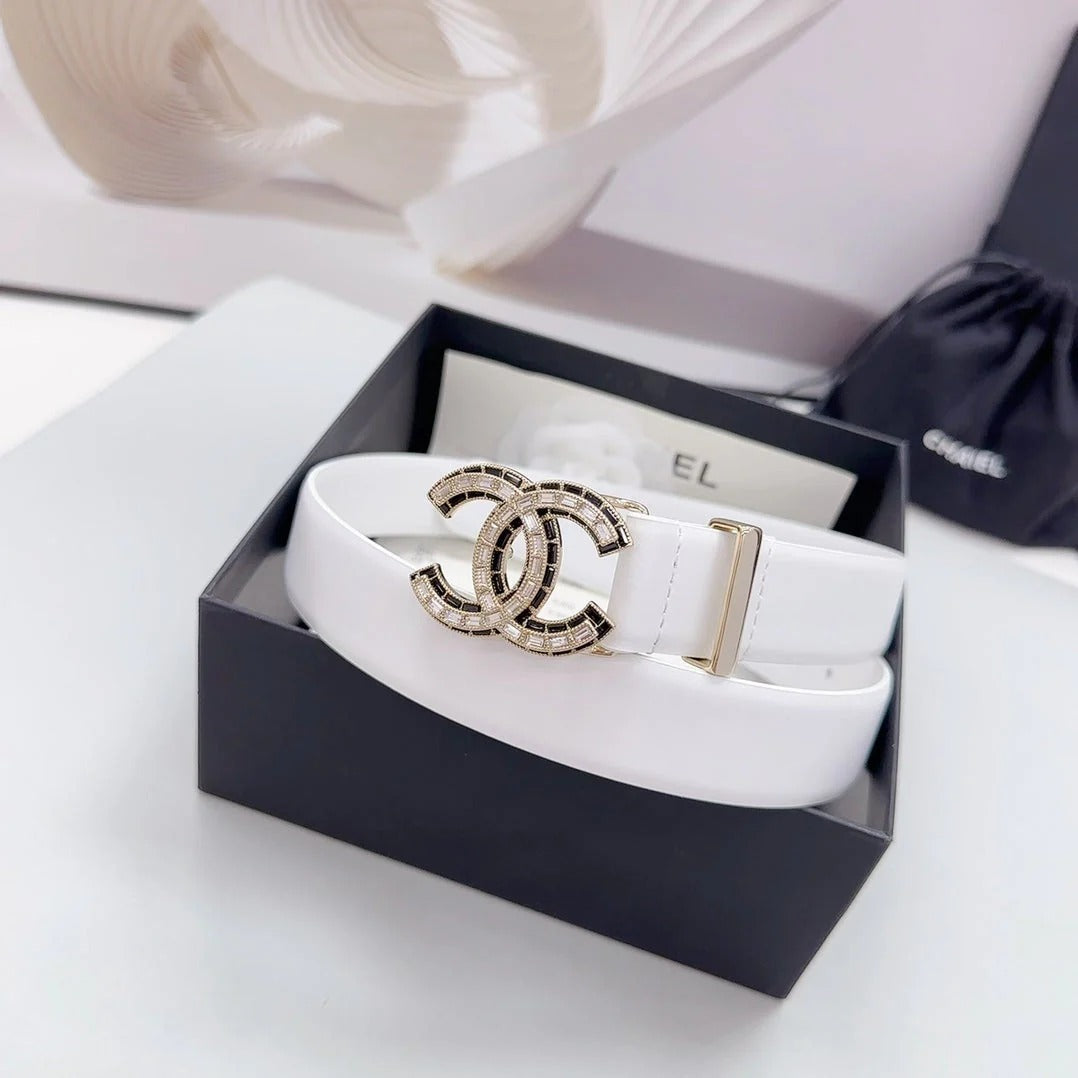 CC 30MM BELT IN WHITE SMOOTH CALFSKIN METAL LOGO