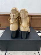 CC Ankle Boots 50mm With Chain Strap Beige Calfskin 529291