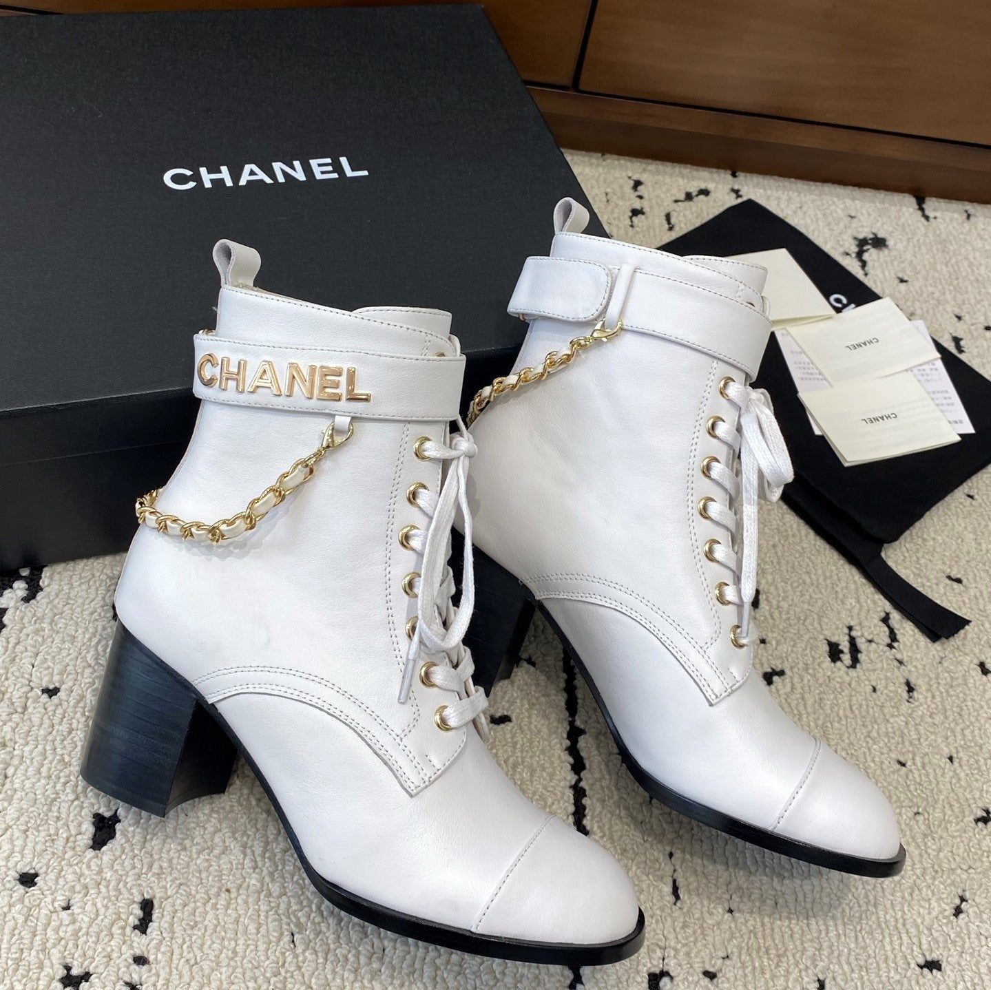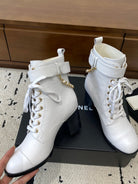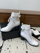 CC Ankle Boots 50mm With Chain Strap White Calfskin 529290
