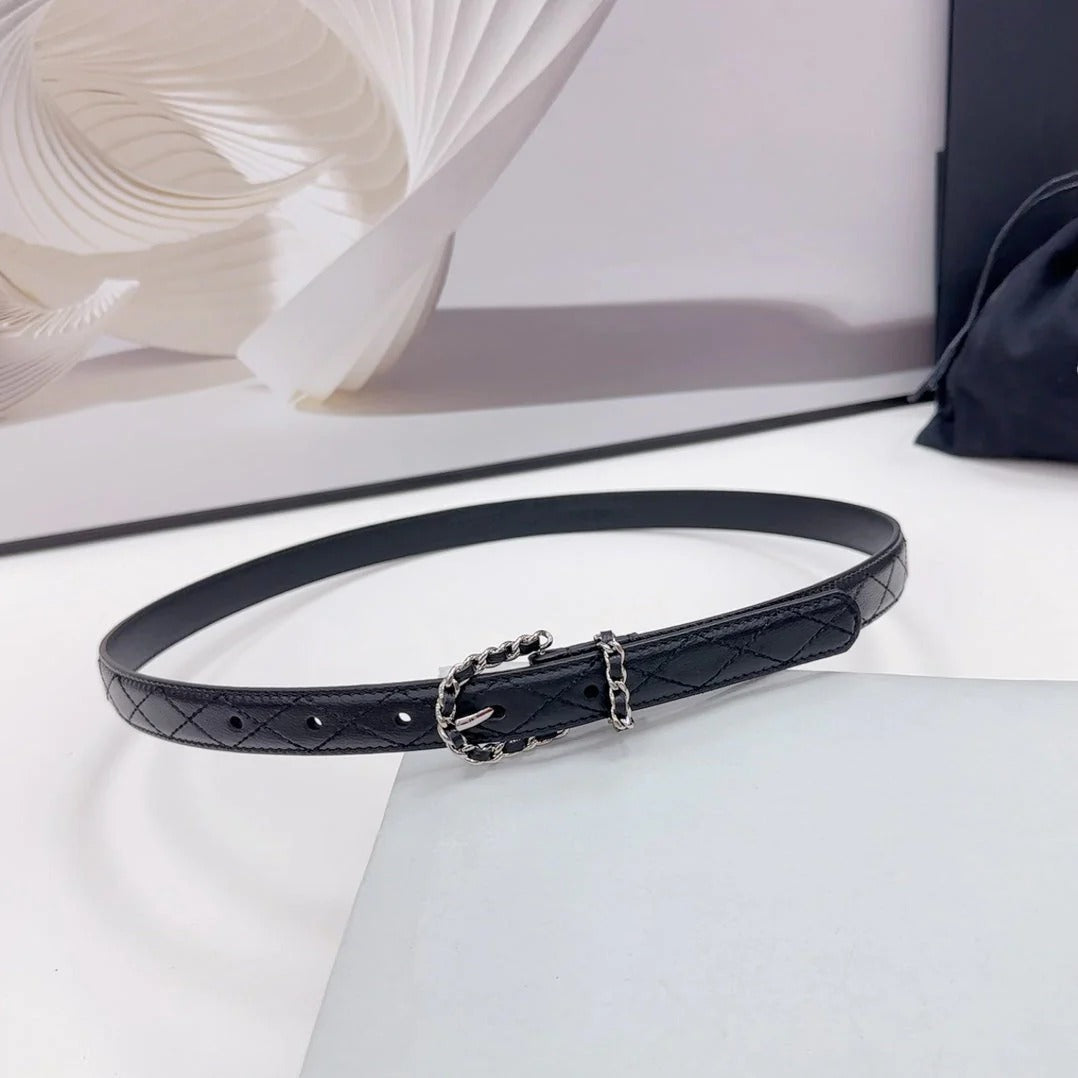 CC BELT 20 MM IN BLACK CALFSKIN SILVER HARDWARE