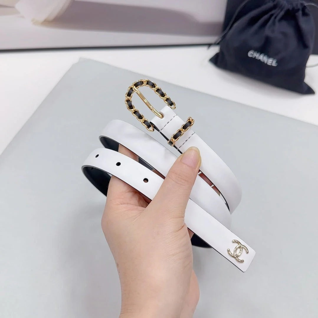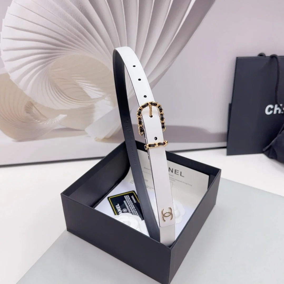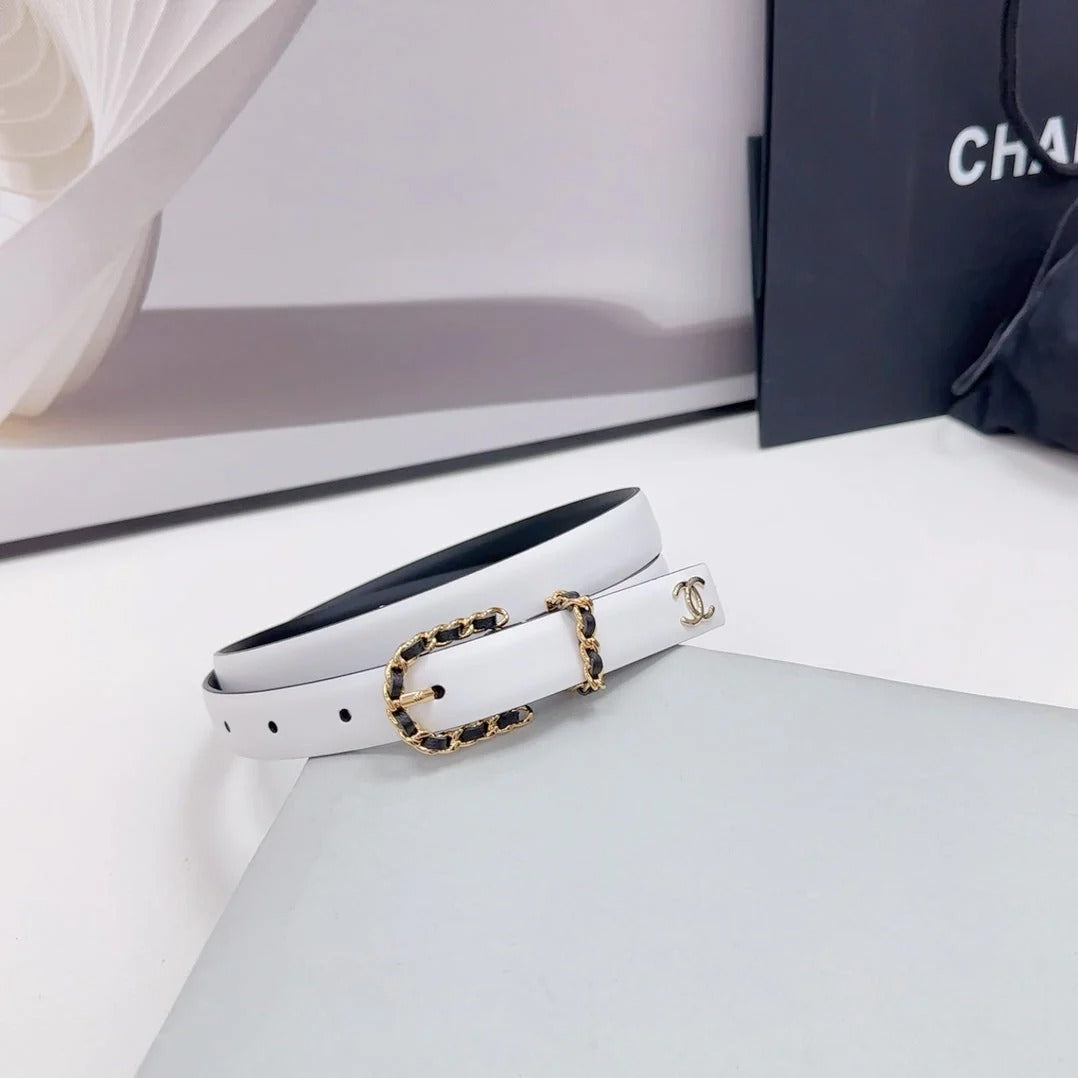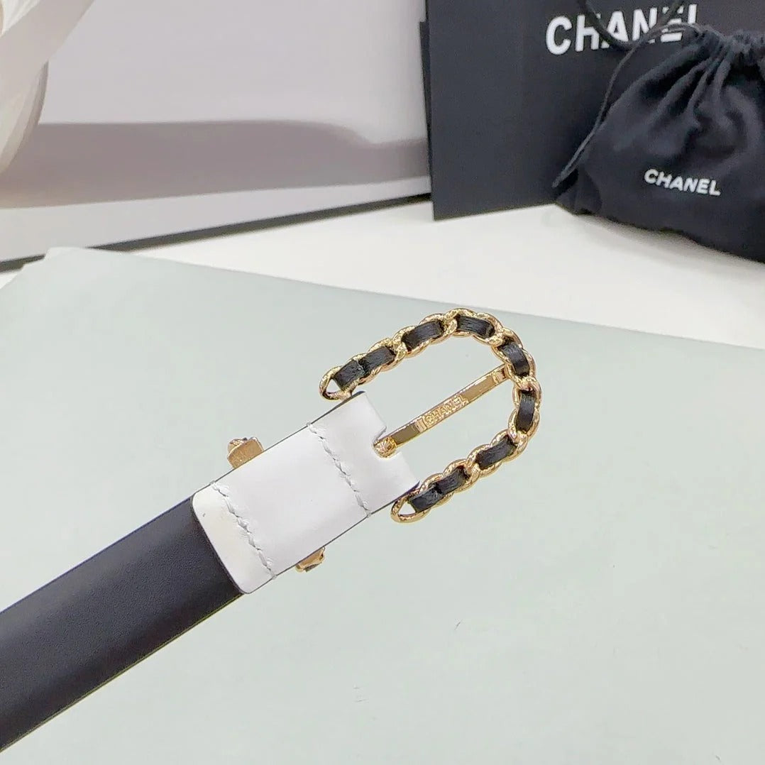 CC BELT 20 MM IN WHITE MIX BLACK CALFSKIN GOLD HARDWARE