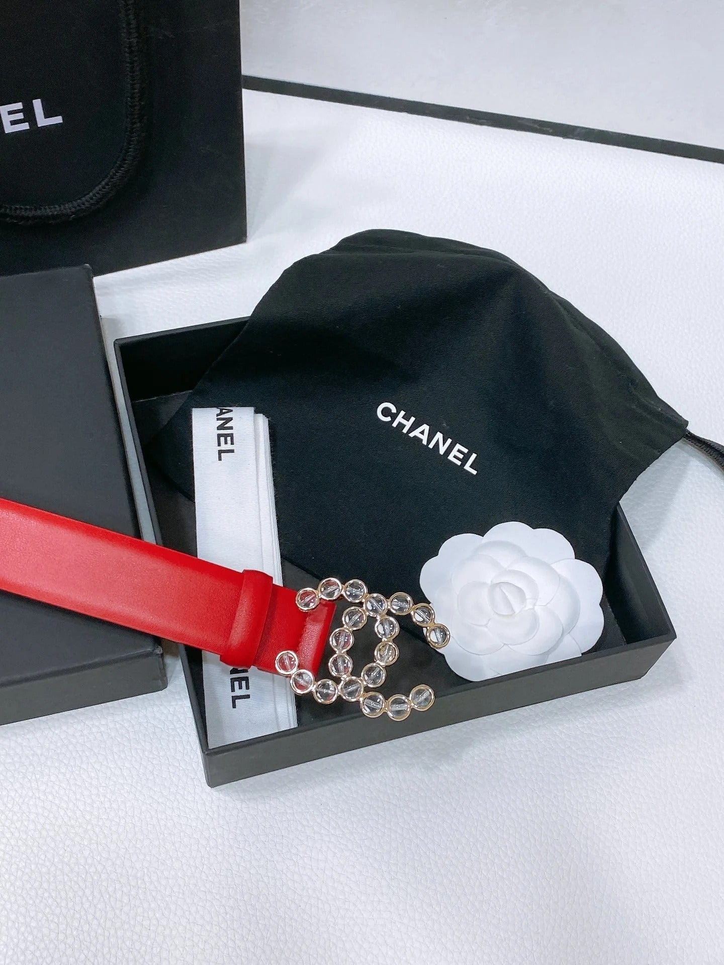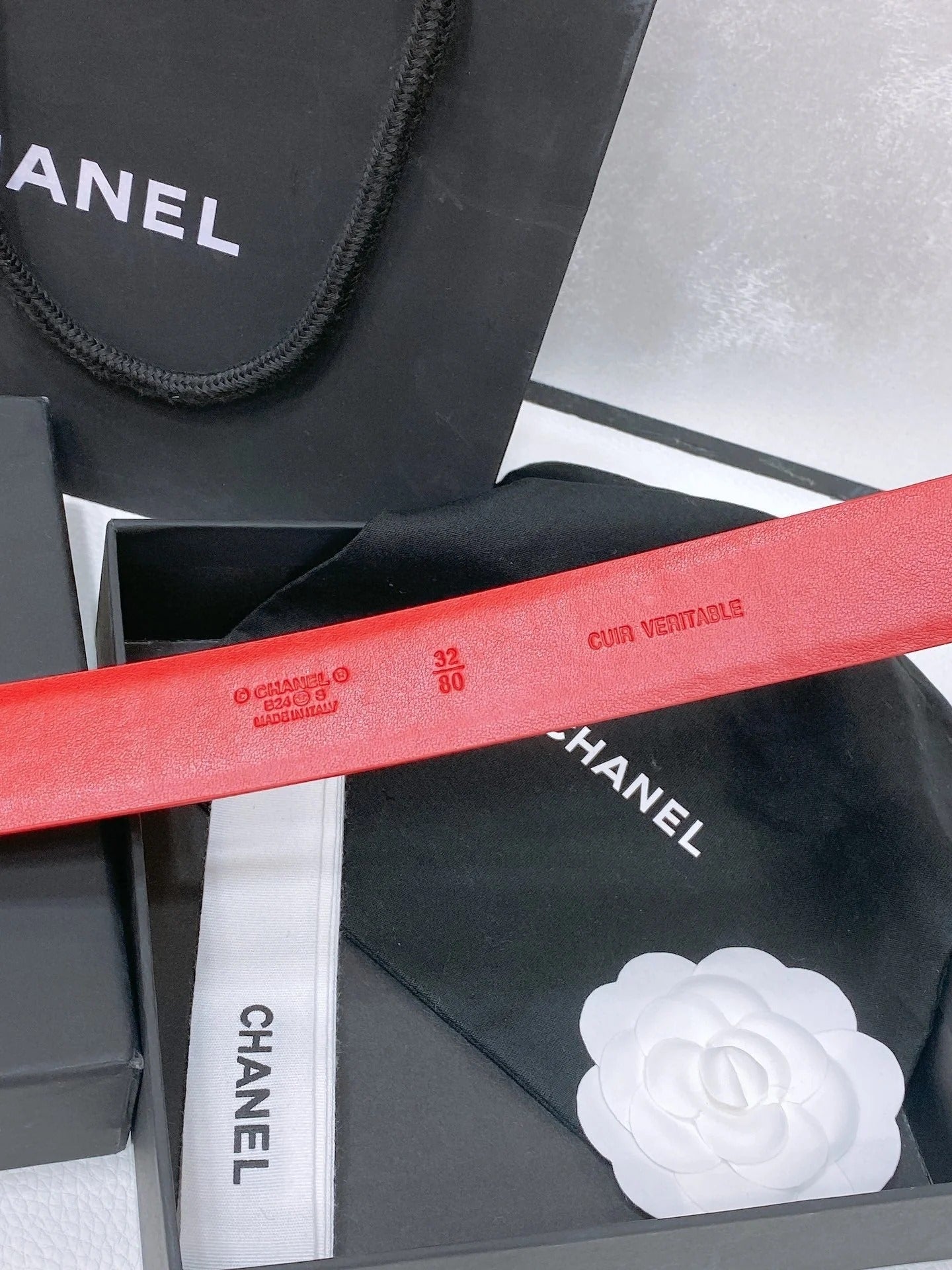 CC BELT 30 MM IN CHERRY RED CALFSKIN PEARL LOGO WITH GOLD HARDWARE