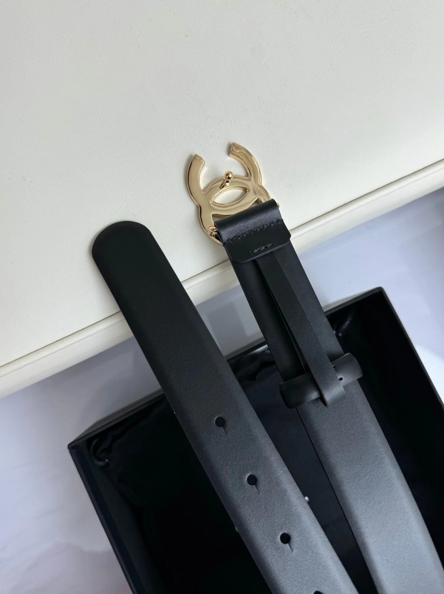 CC BELT 30MM IN BLACK SMOOTH CALFSKIN GOLD HARDWARE ATTACH RHINSTONES