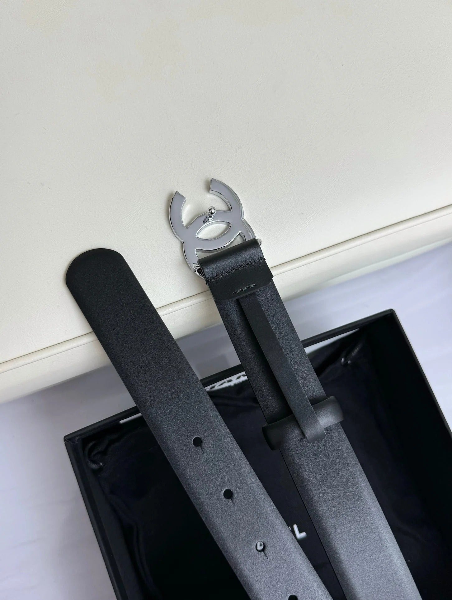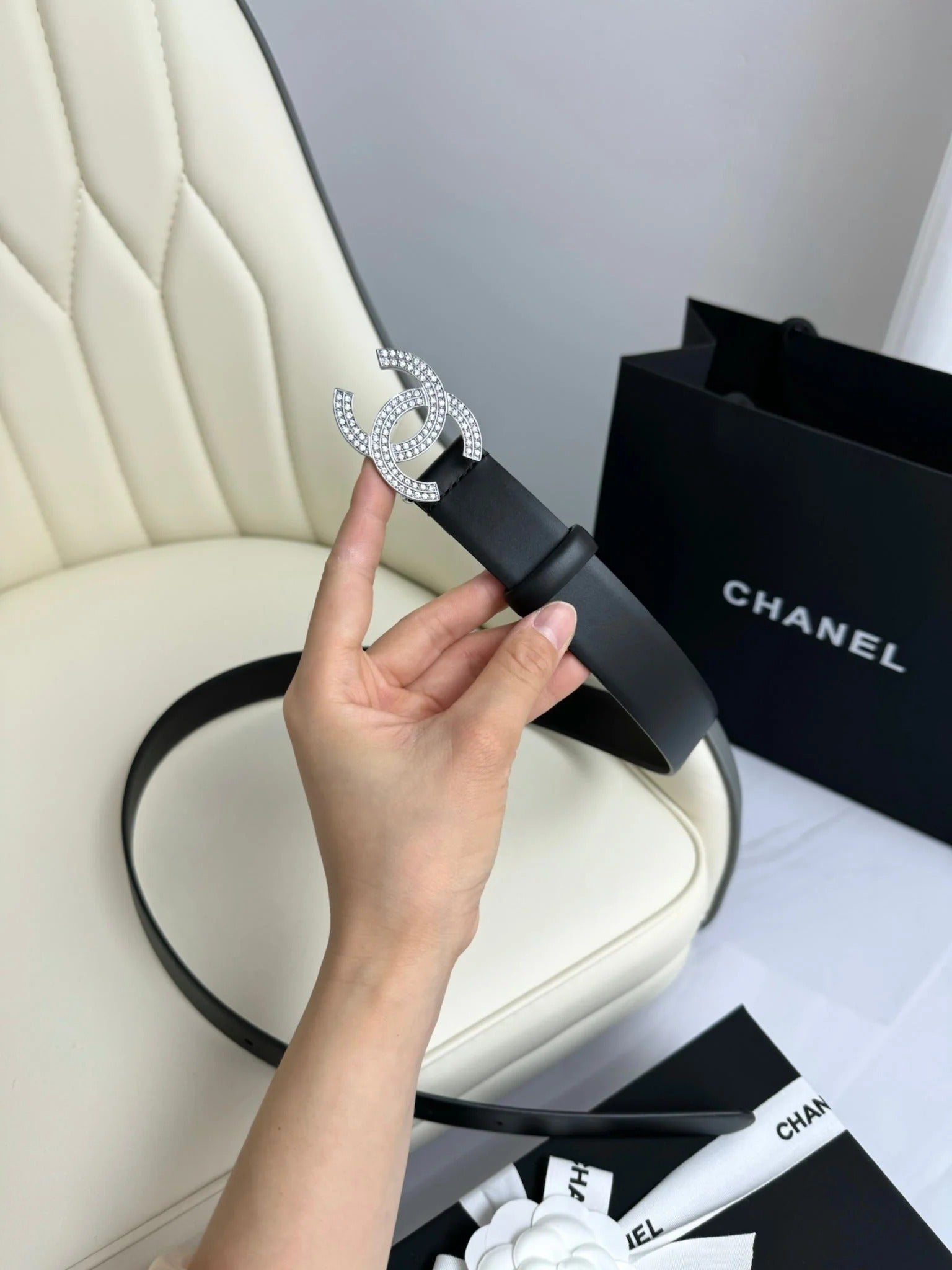 CC BELT 30MM IN BLACK SMOOTH CALFSKIN SILVER HARDWARE ATTACH RHINSTONES