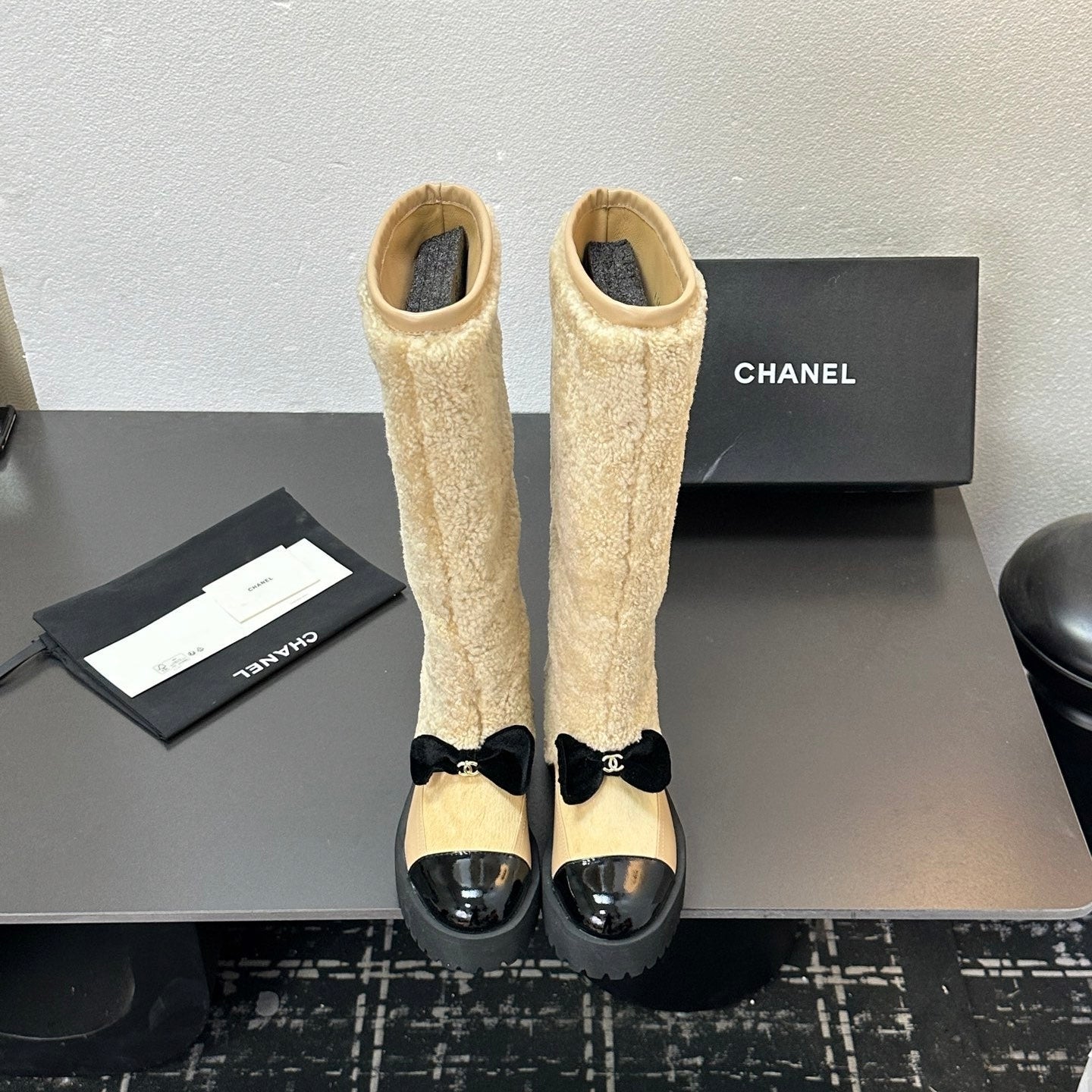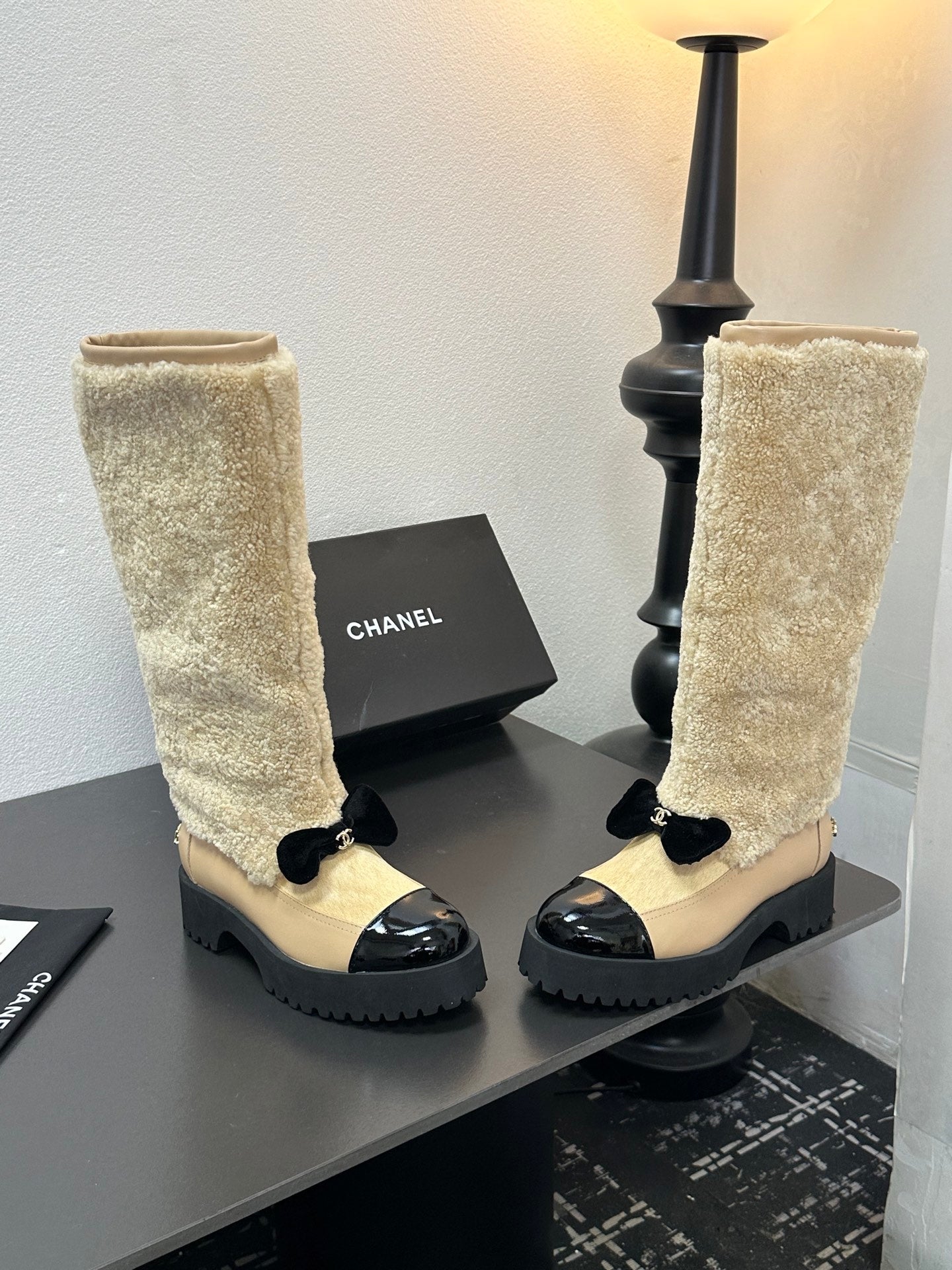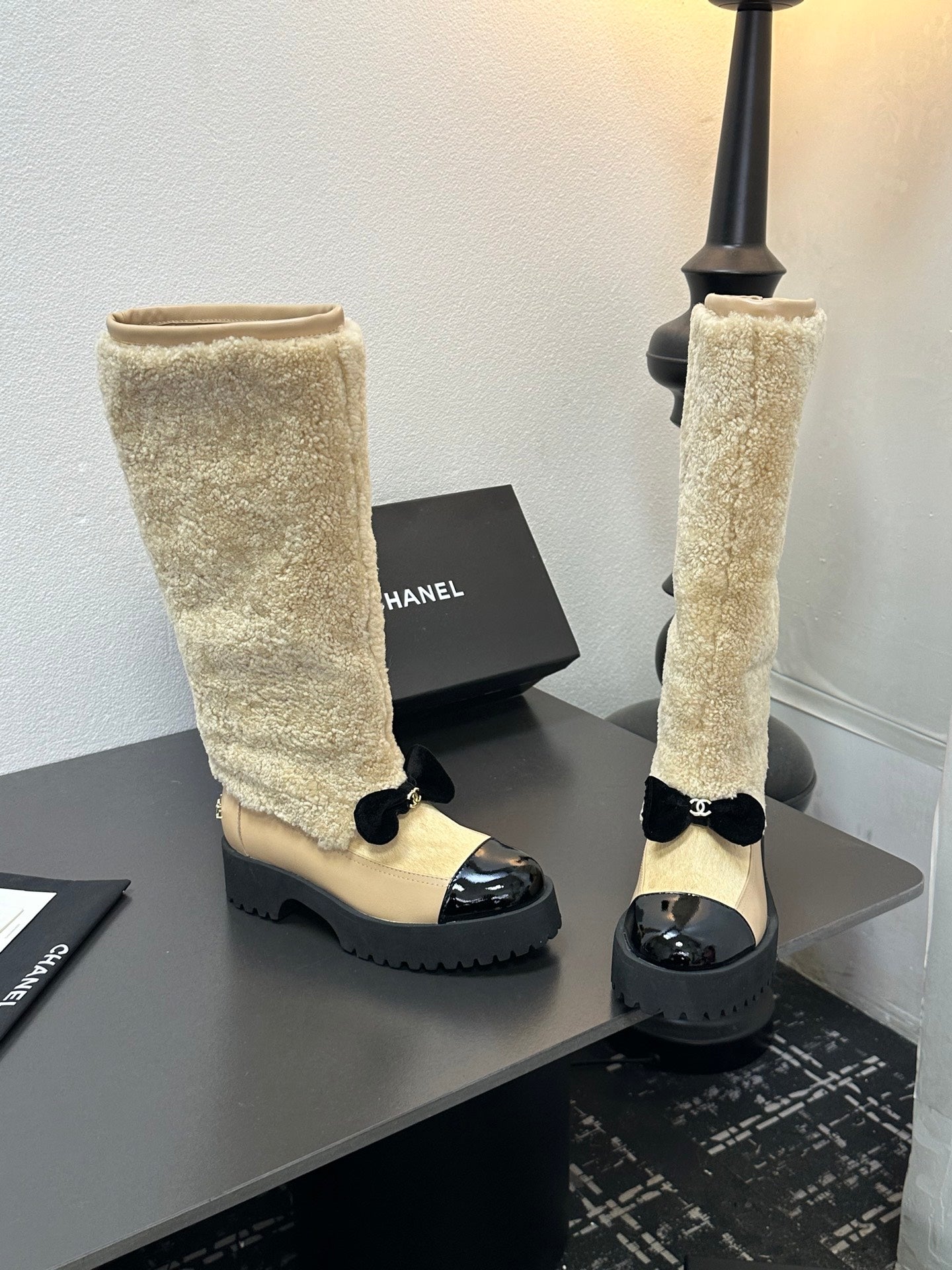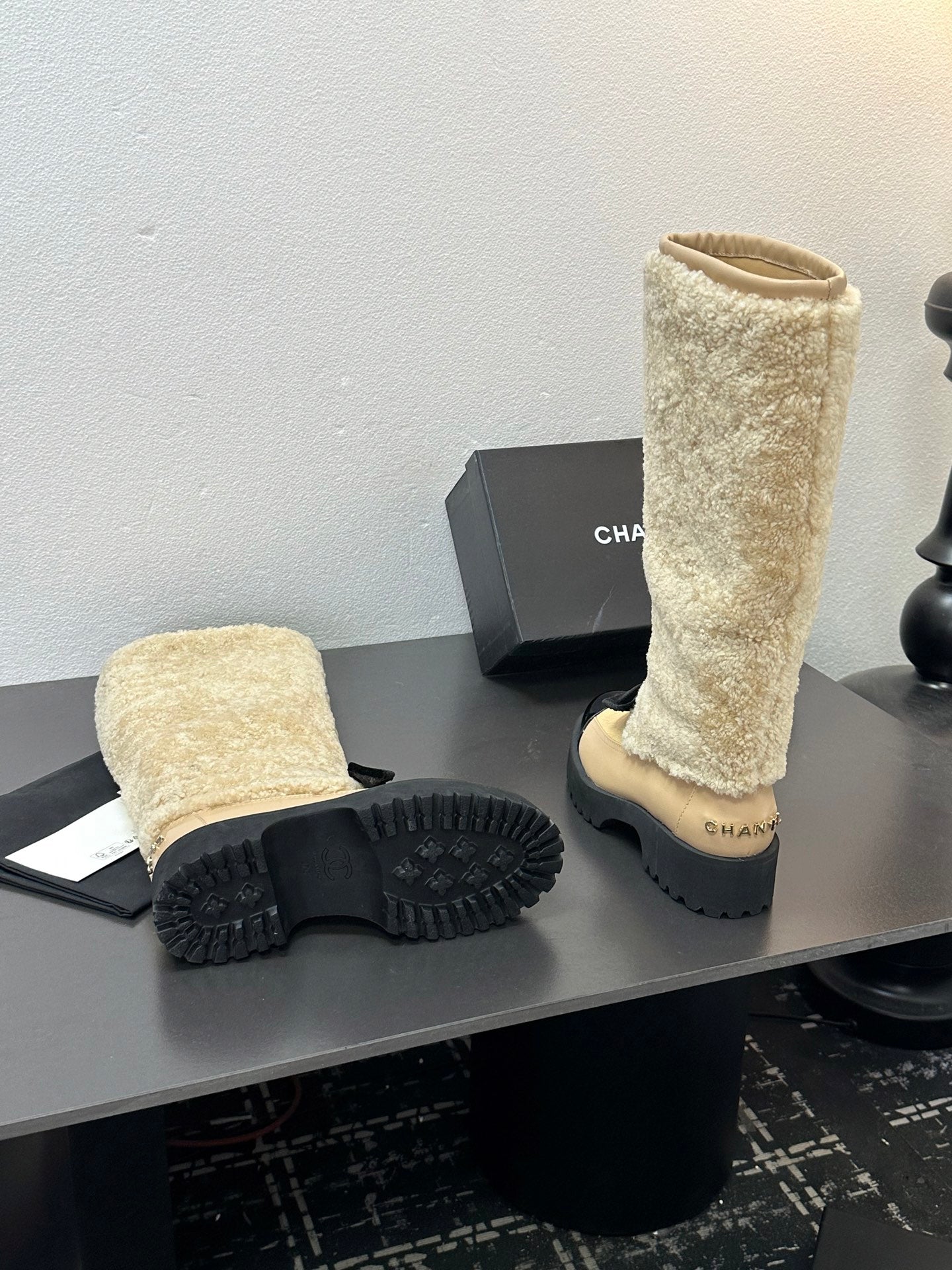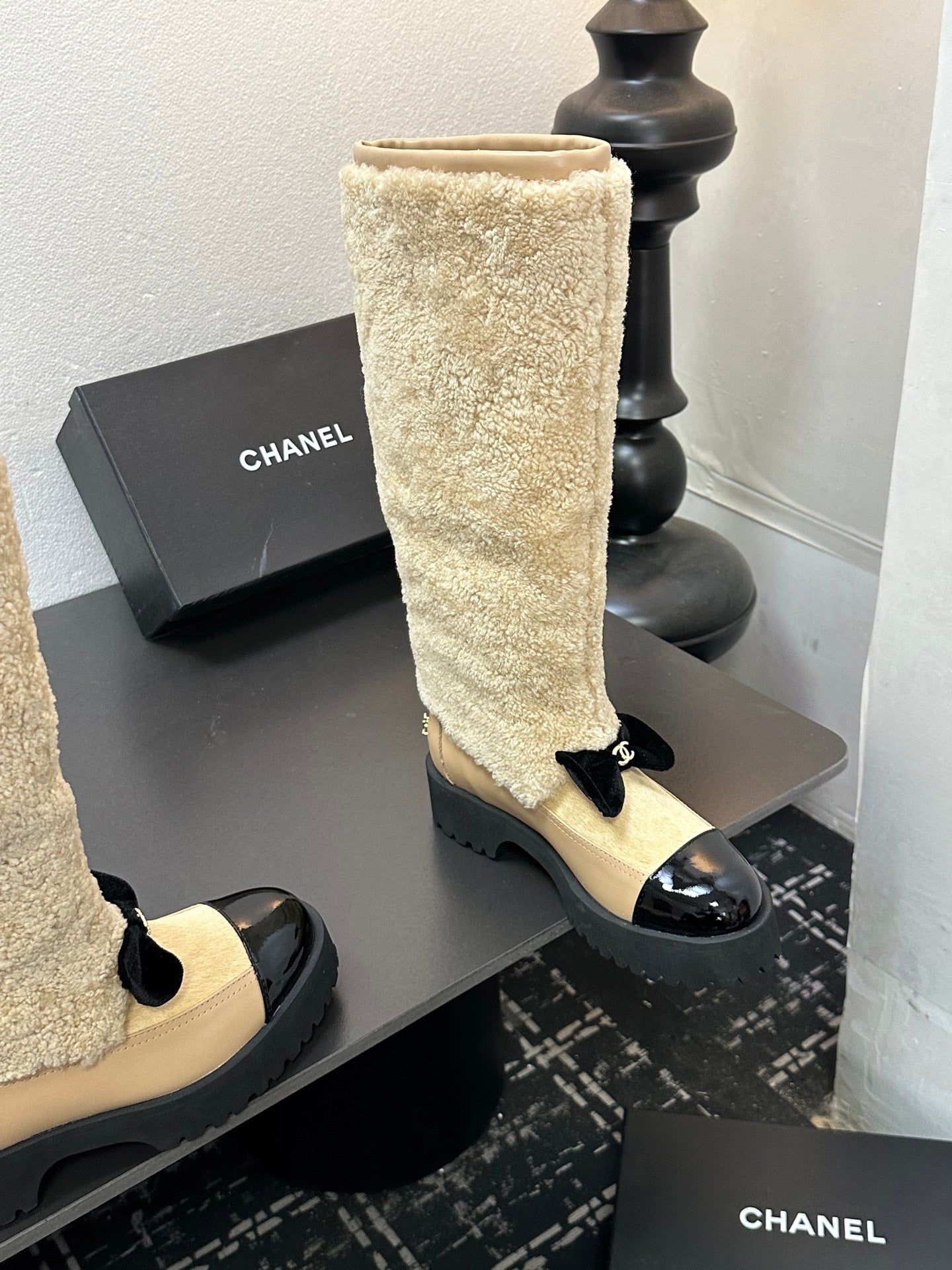 CC Coco Neige 2025/26 High Boots Beige Shearling Lambskin Patent Leather 529338