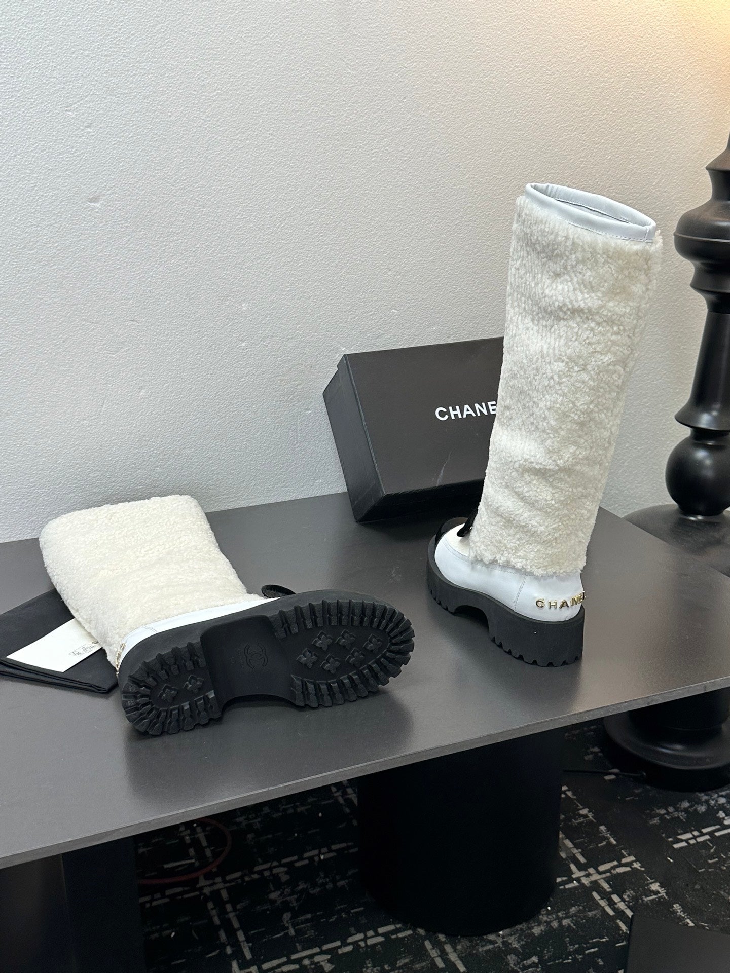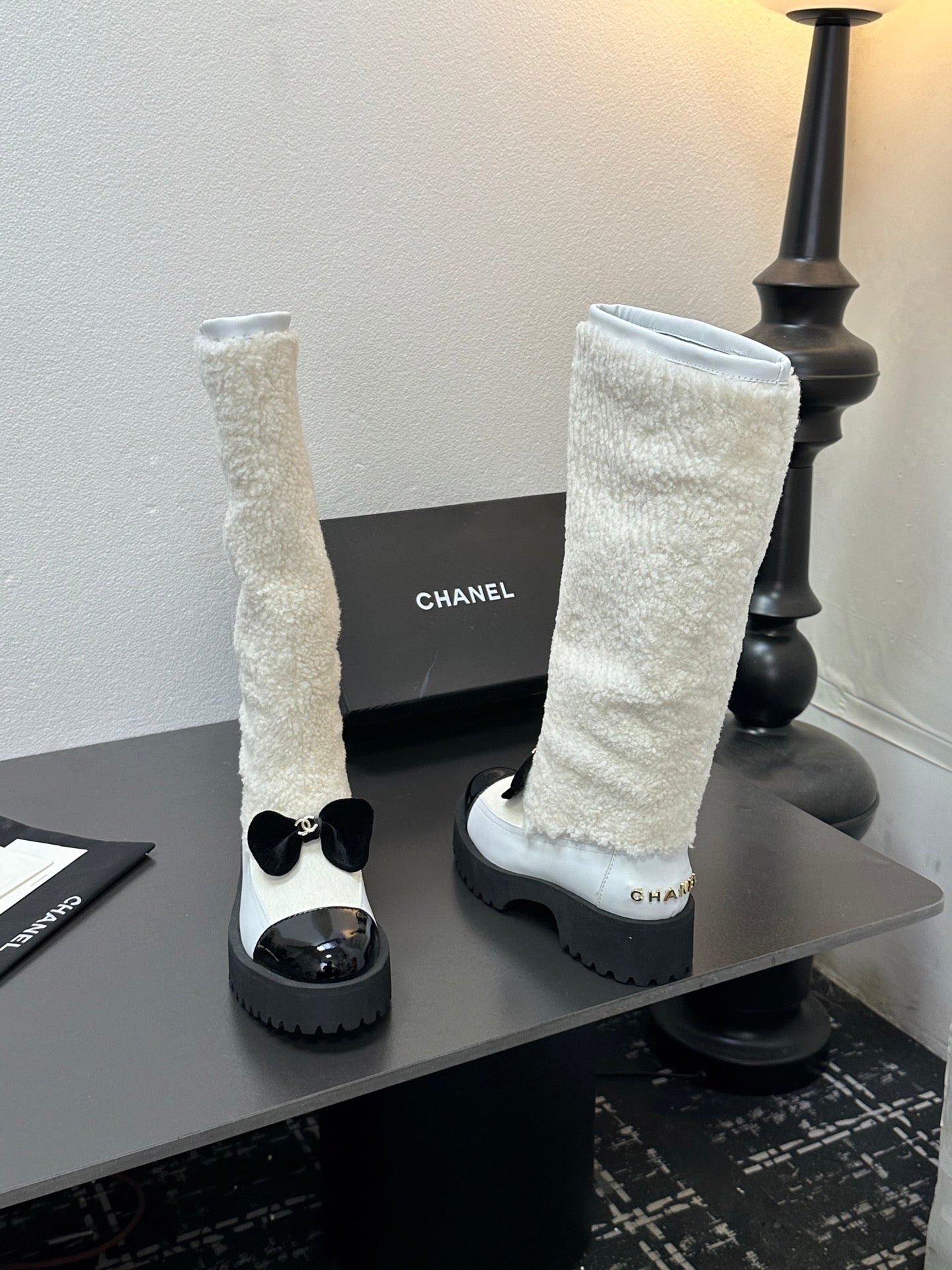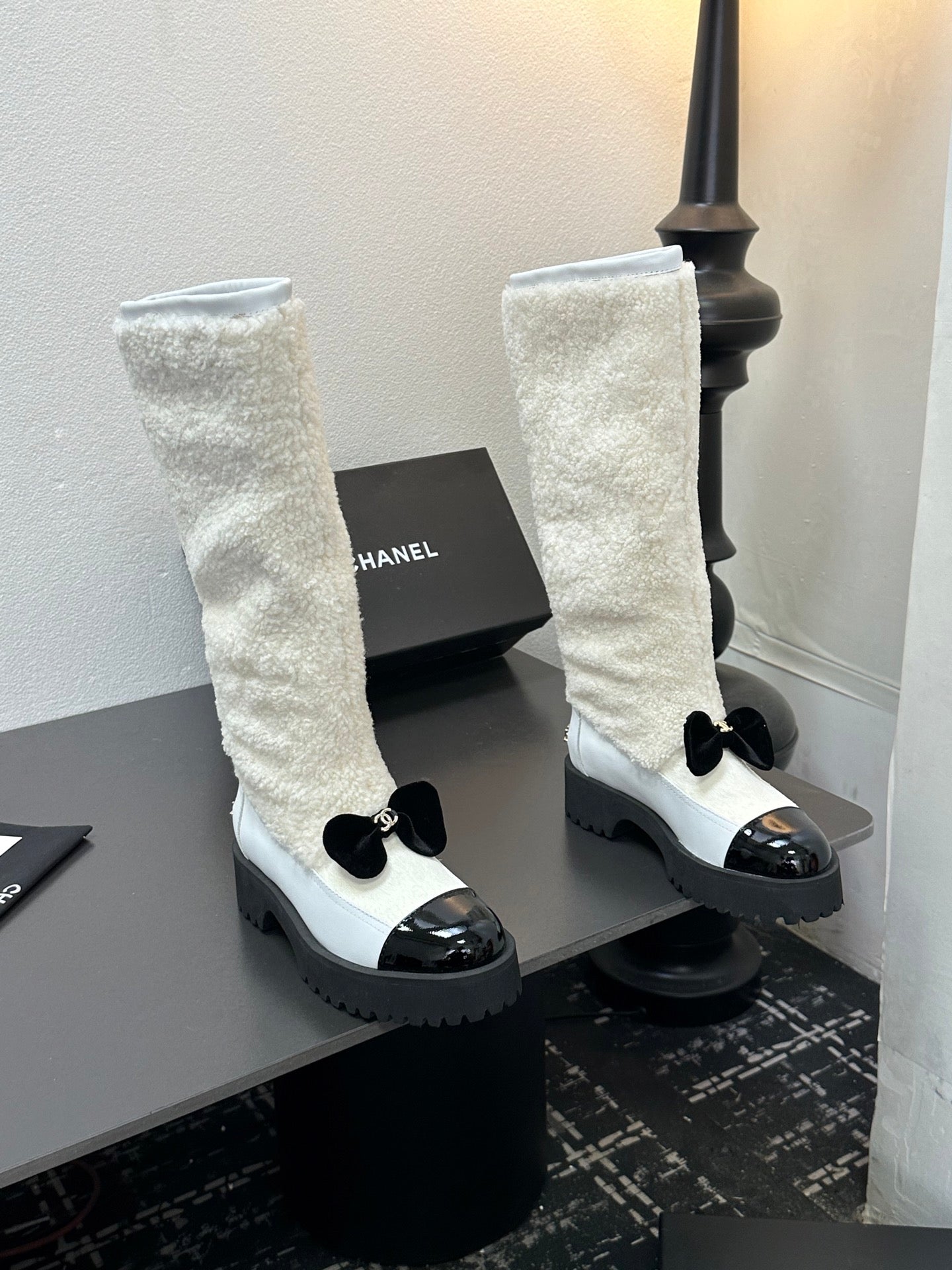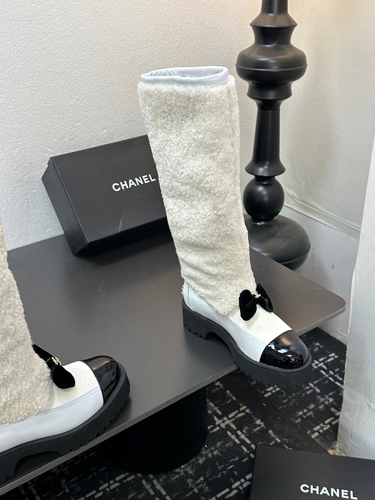 CC Coco Neige 2025/26 High Boots Black White Shearling Lambskin Patent Leather 529340