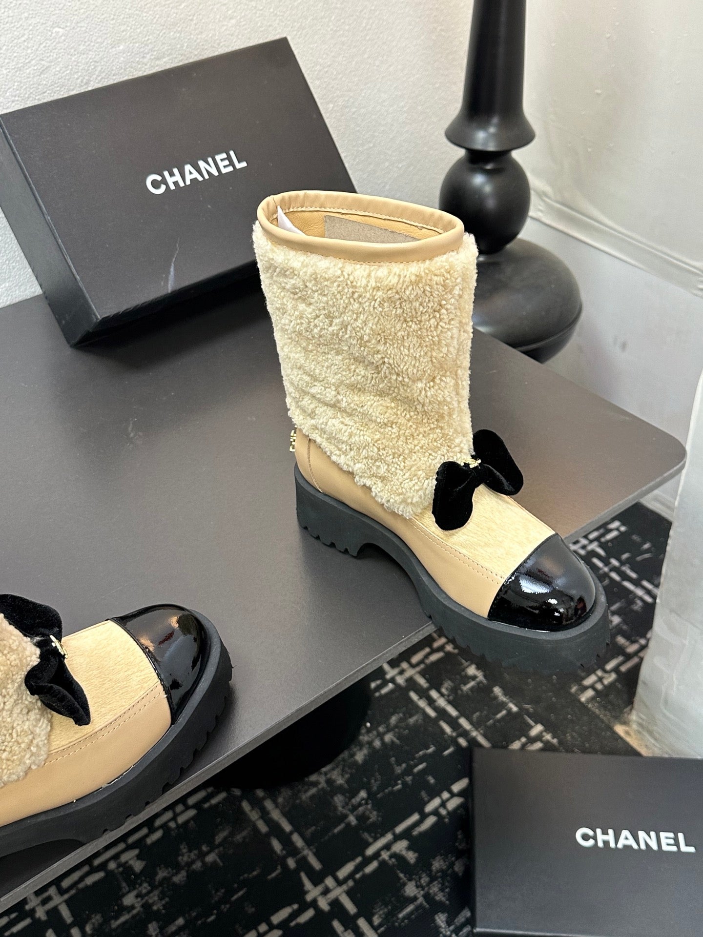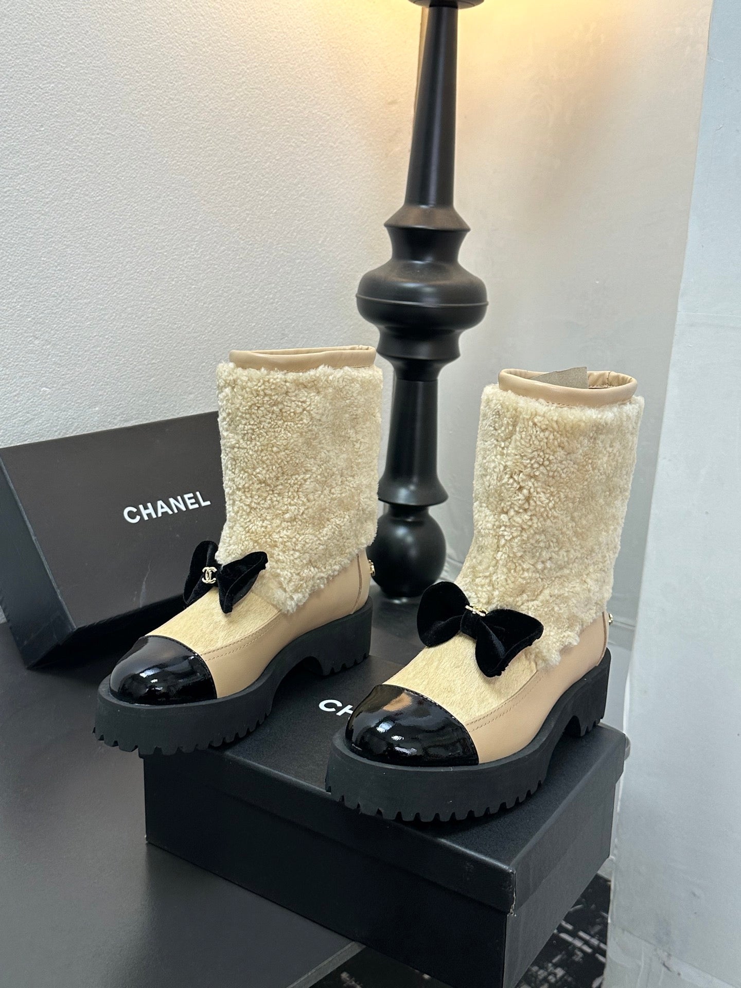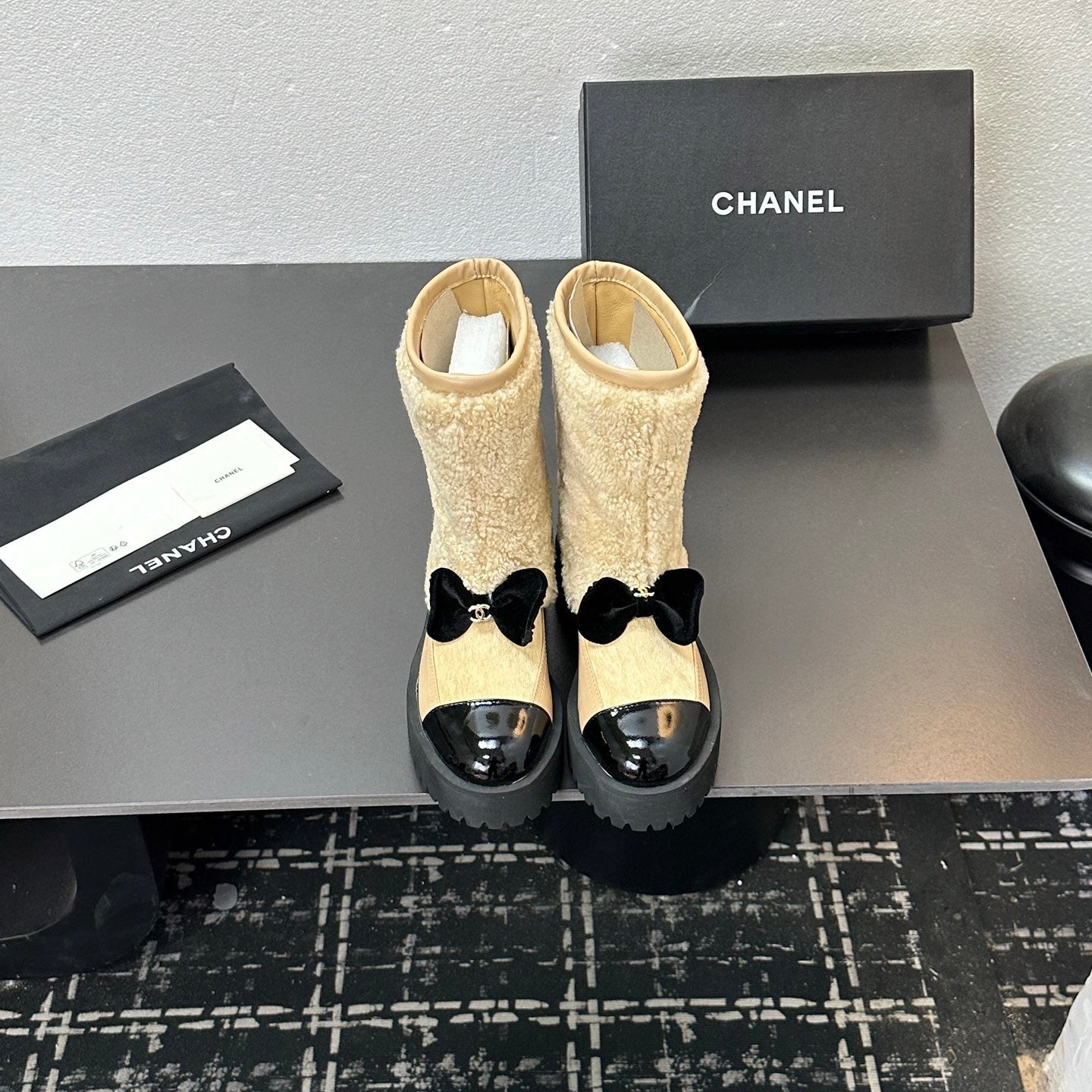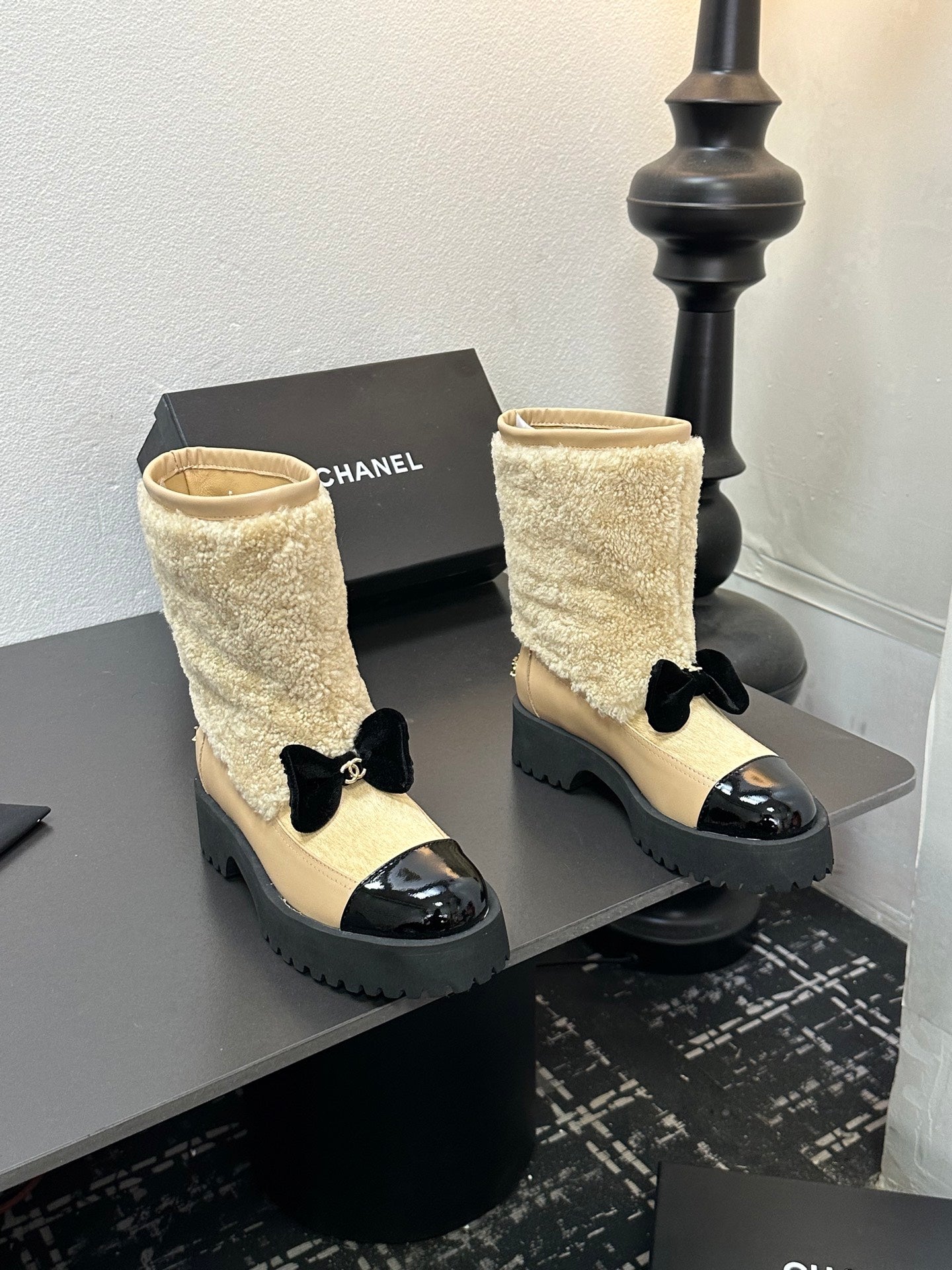 CC Coco Neige 2025/26 Low-cut Boots Beige Shearling Lambskin Patent Leather 529342