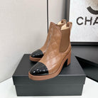 CC FW 25 Platform Ankle Boots Brown Black Patent and Quilted Leather 532622